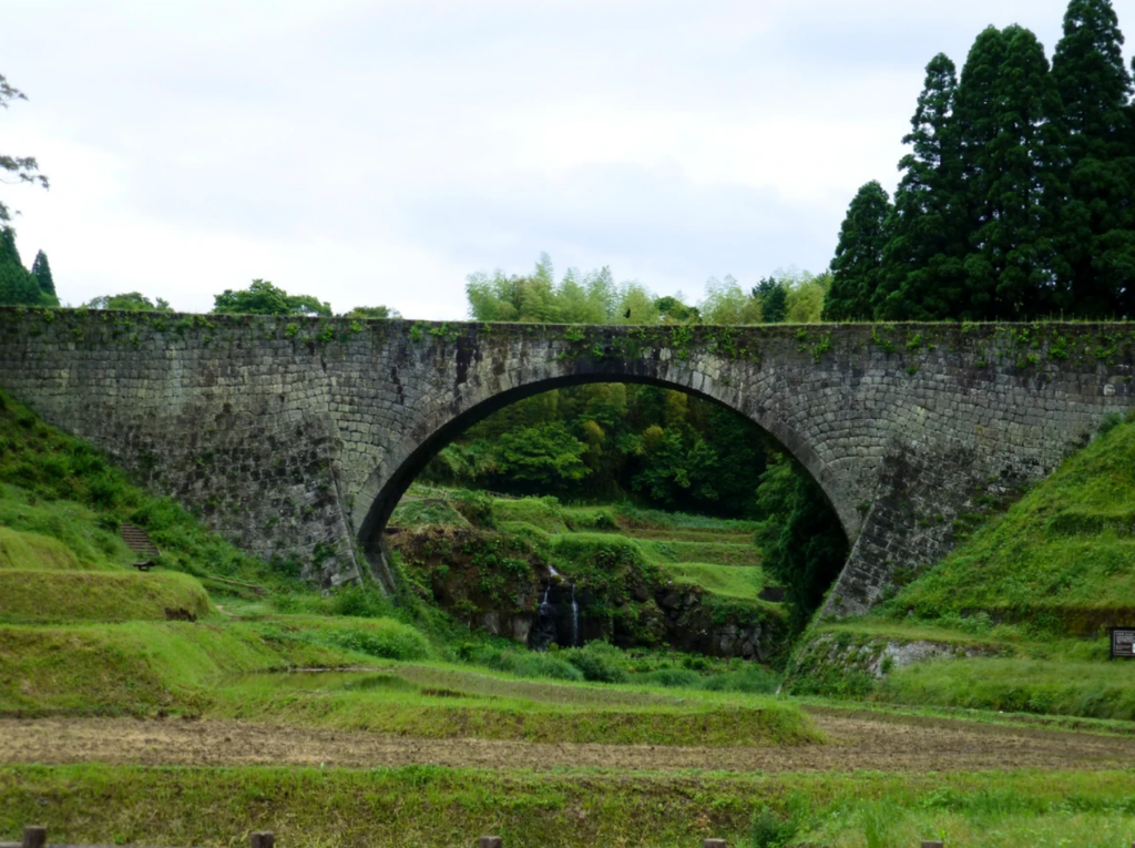 嘉永7年(1854年) 水不足に悩む白糸台地に、水を送るため、矢部の惣庄屋・布田保之助によって造られた日本最大級の石造りアーチ水路橋です。