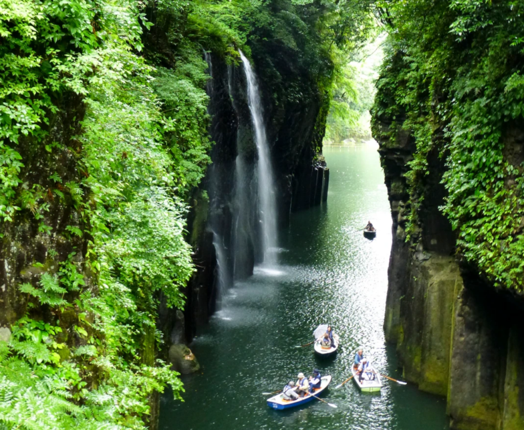 阿蘇山の火山活動によって、噴出した火砕流が冷え固まり 侵食された断崖がそそり立つ峡谷で、高いところで100m、平均80mの断崖が東西に約7キロに渡って続いています。