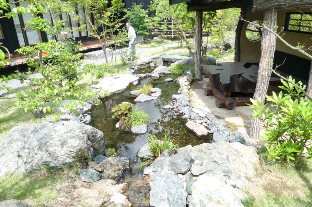 「露天風呂をはじめ、細かなところでは植栽を使用したコンクリートを隠す術や、曲がった木を使用した東屋の設計など、御手洗さんらしさを随所から感じられるひと時でした。