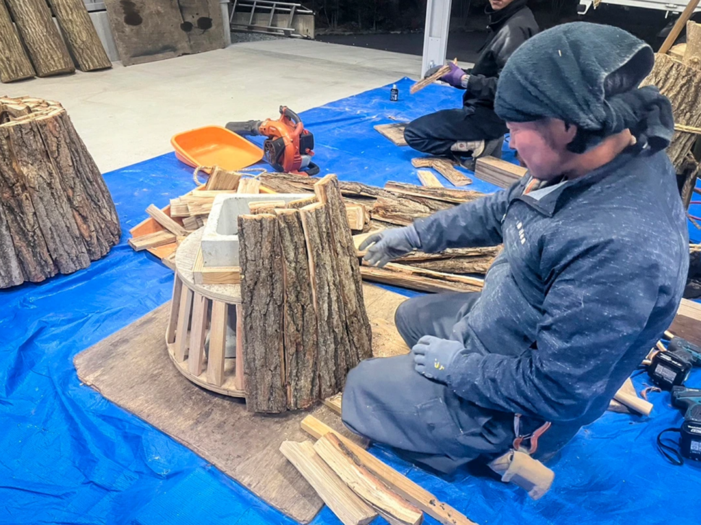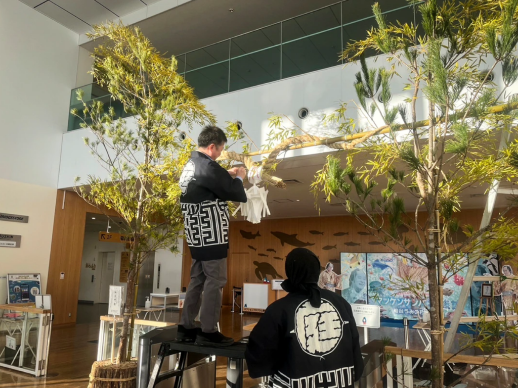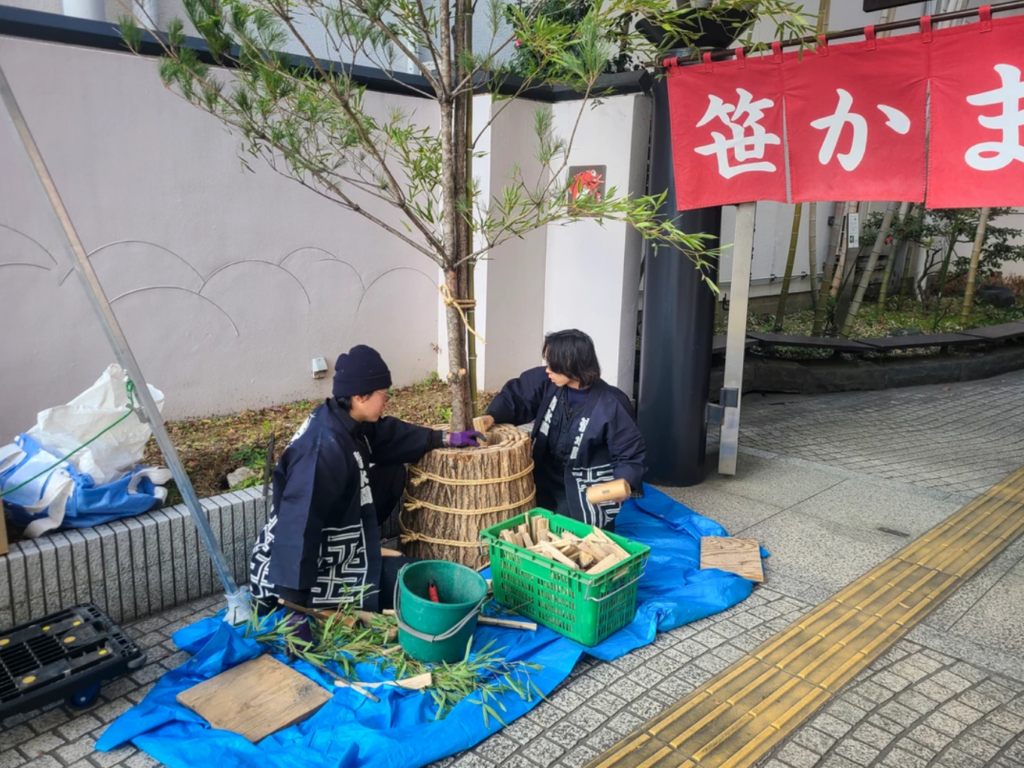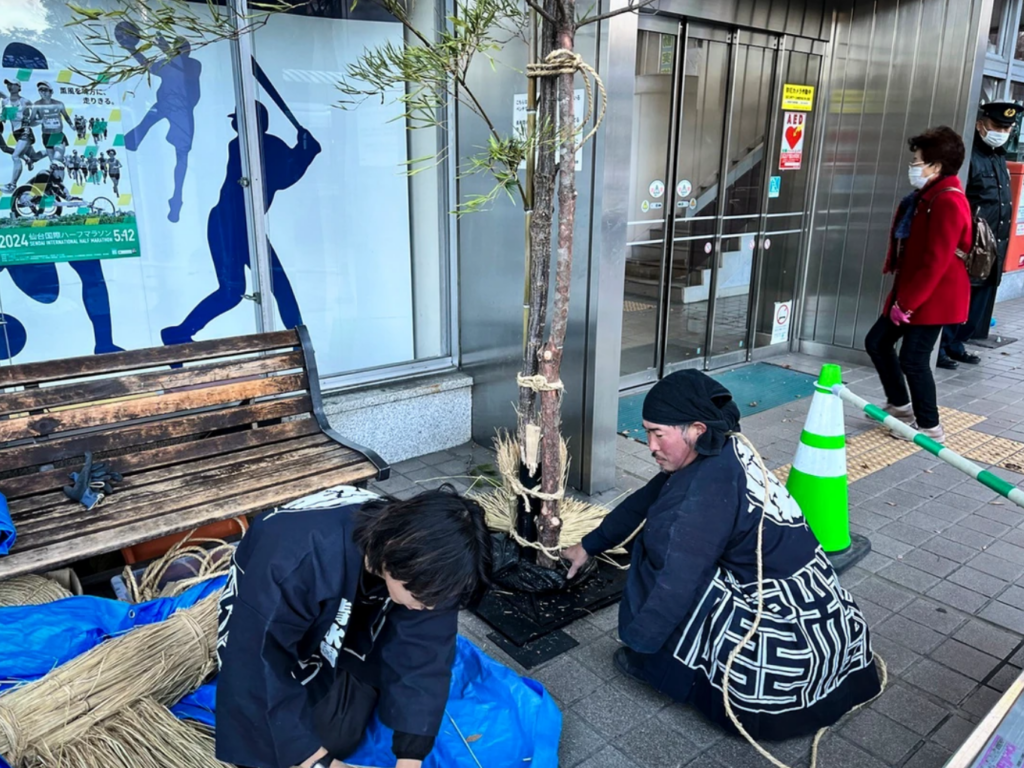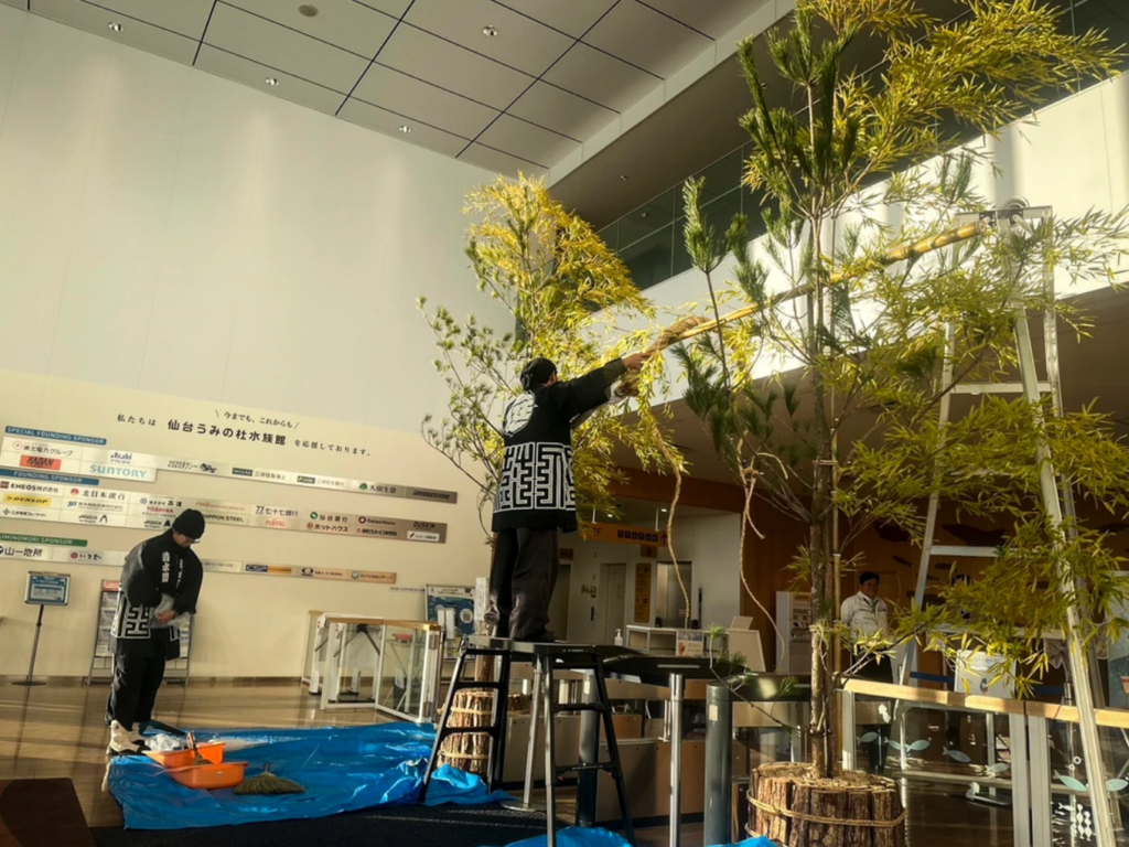 かねてから弊社も参画しております‘仙台門松’の制作もいよいよ5年目……令和5年におきましては、例年制作している、うみの杜水族館・鐘崎 笹かま館・高惣木工ビル・ウェスティンホテル仙台に加えて、弊社 清水園・仙台市役所計、6箇所の門松制作を手掛けさせて頂きました。