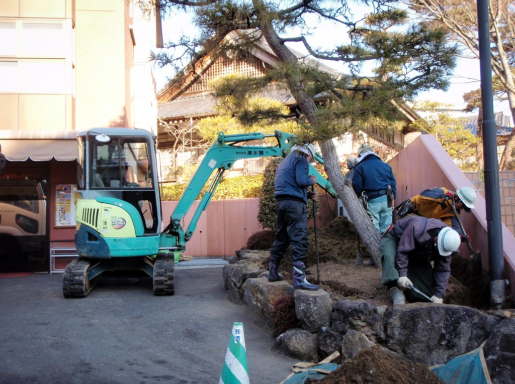 平成4年に初めて移植をしてから、同じ敷地内で3回お引越しを繰り返しているというモミジ。大きさからしても象徴的でとても印象に残ります。階段の改修工事と併せて、移植を進めて参りました。