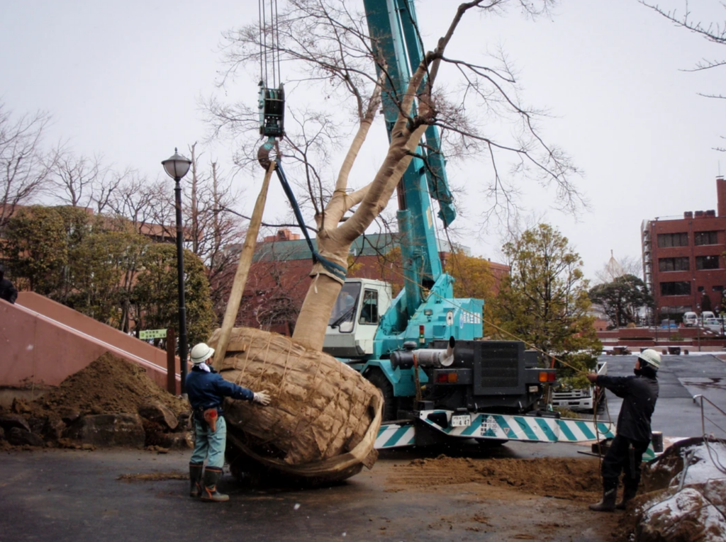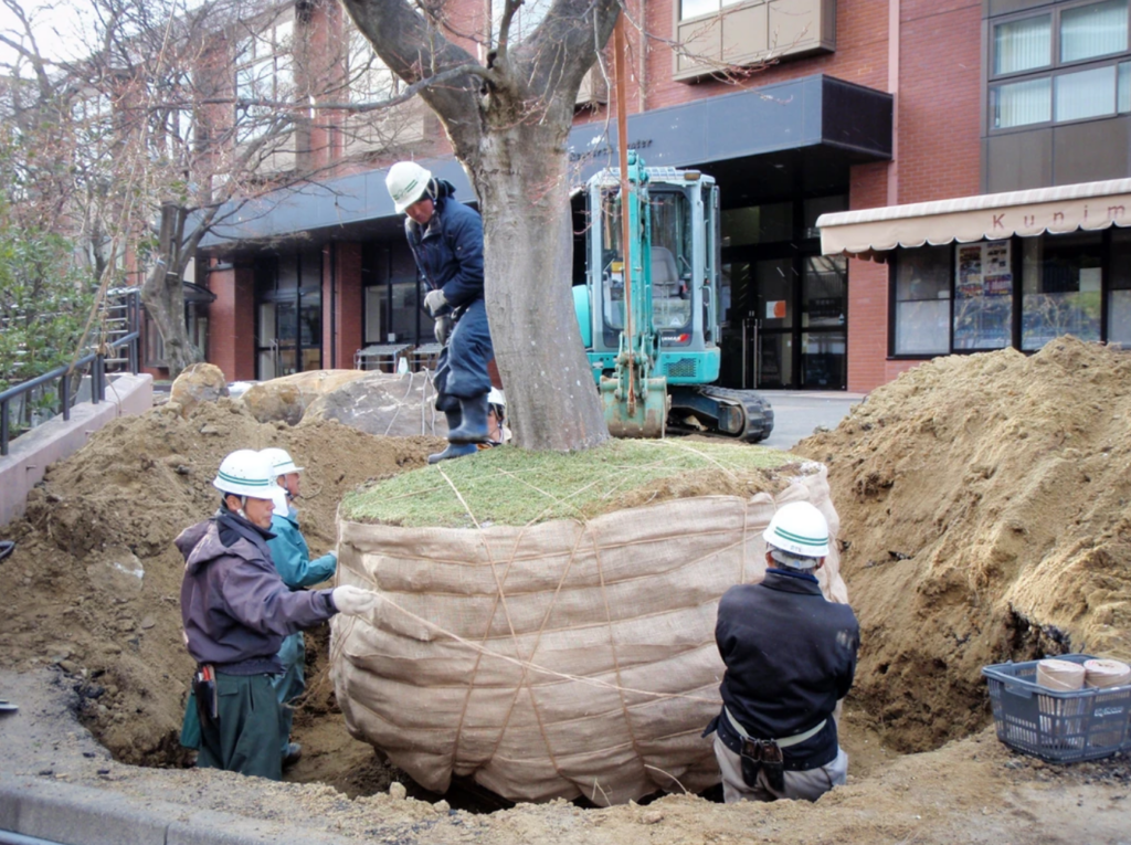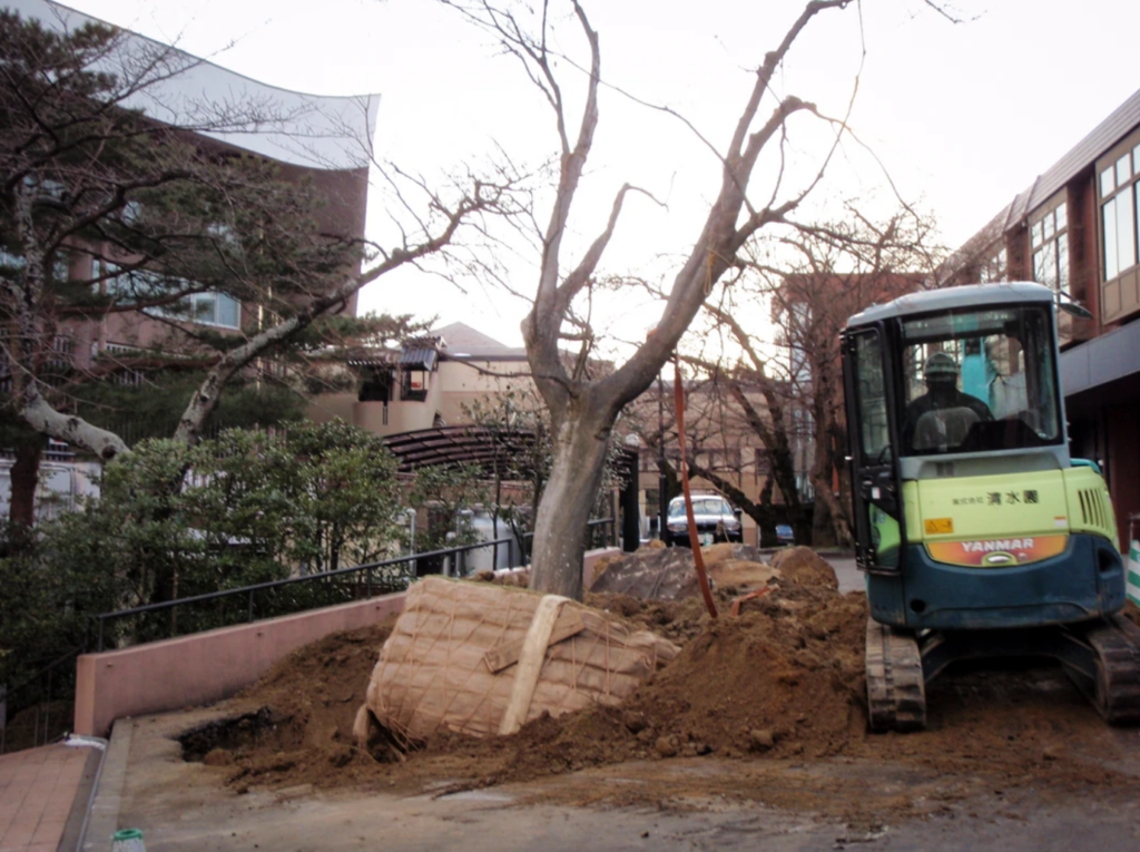 距離にして約15mの移動ですが、 少しでも動かすということは 大きな木の場合大ごとです。