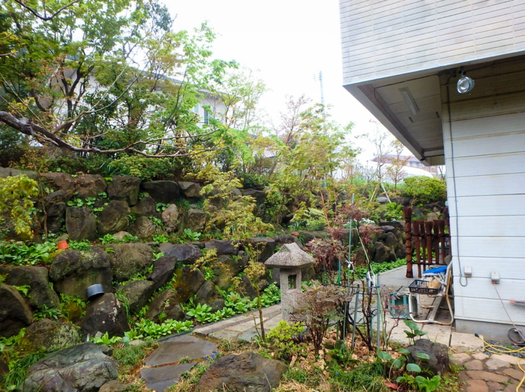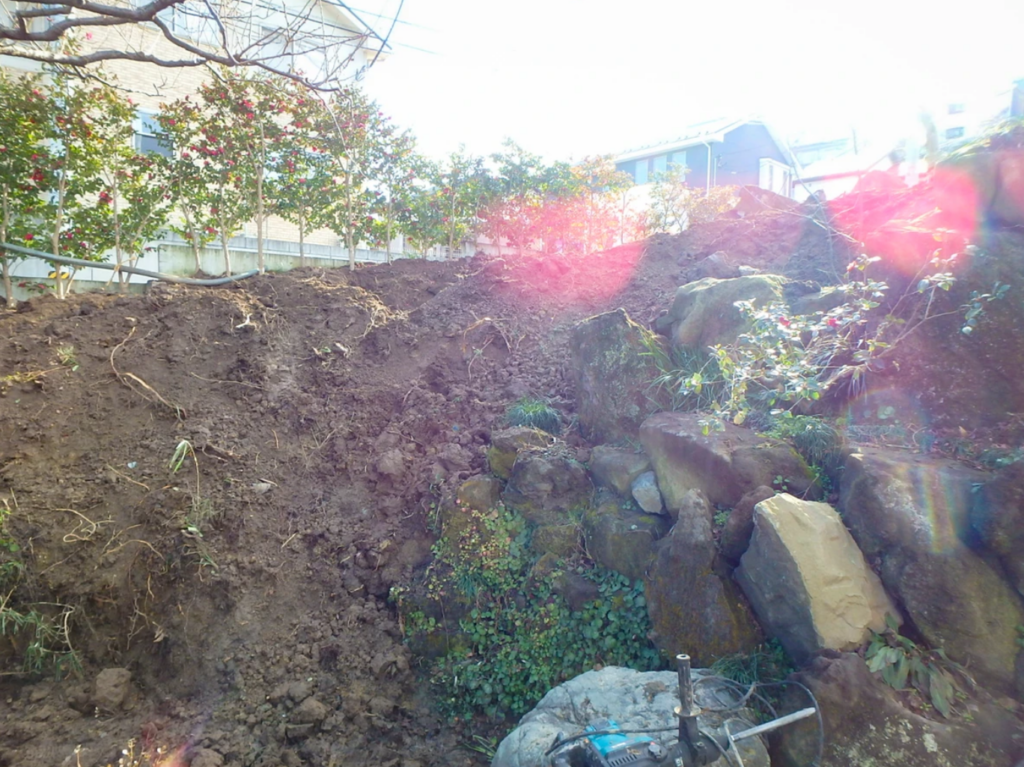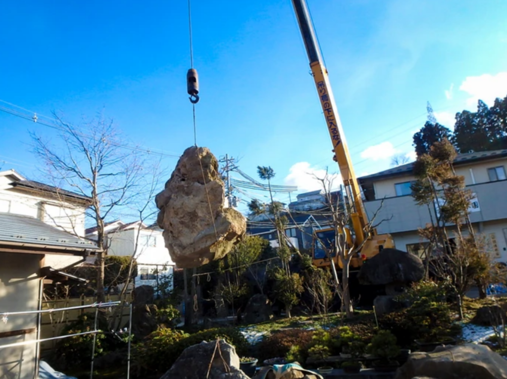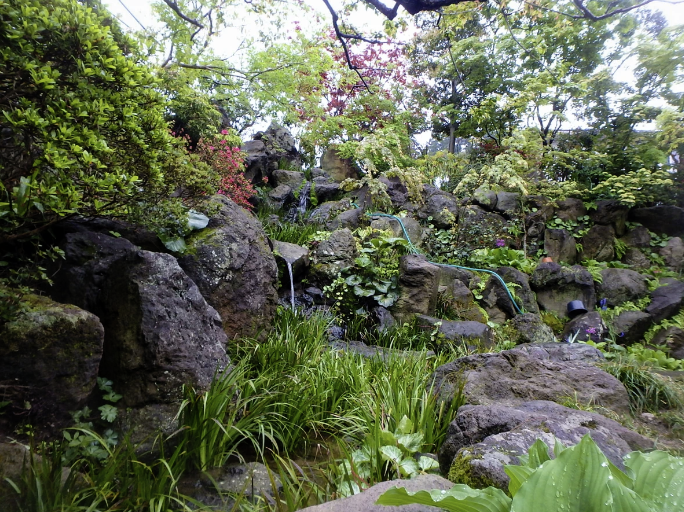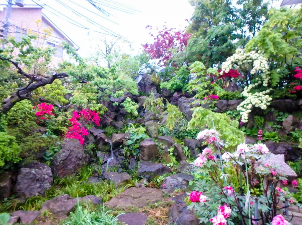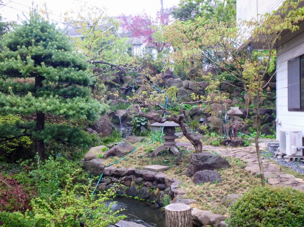 弊社代表が10年計画で実施している‘敷地の全面改修’法面滝石積み3期工事でございます。前回2期工事でお話ししていた濾過槽も配置を変えたいと思っておりましたので、併せて一新することに致しました。法面だったところも全て石積みにしたおかげで、コンクリートだった部分も荘厳な印象に仕上がっています。