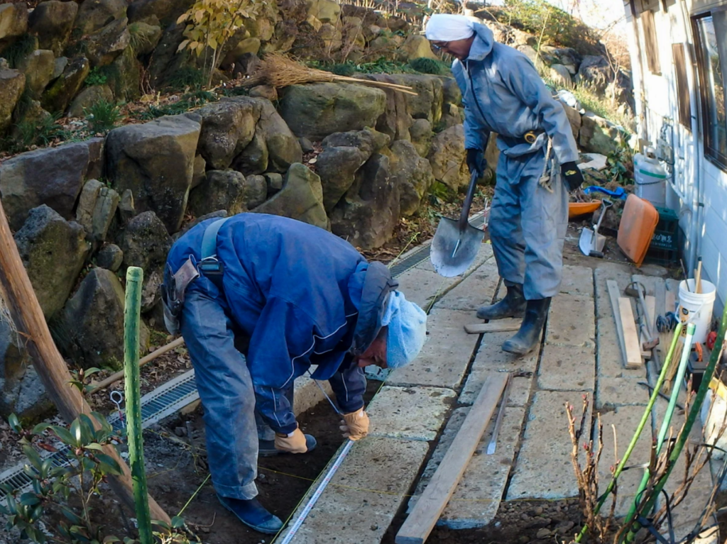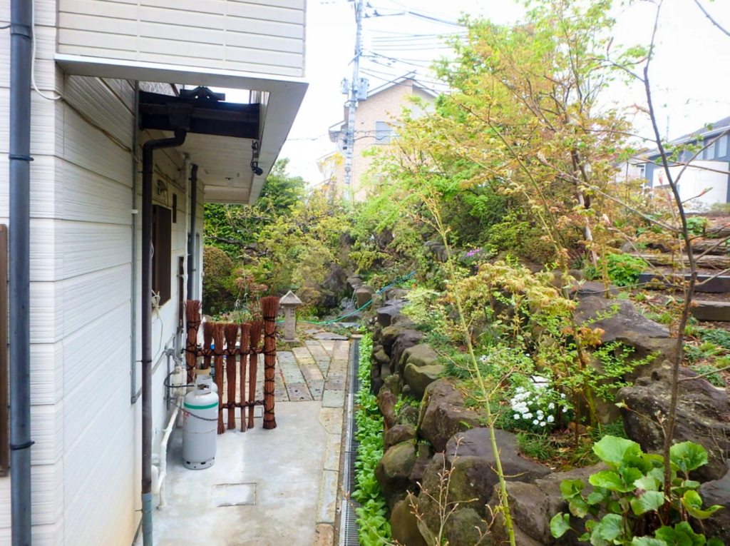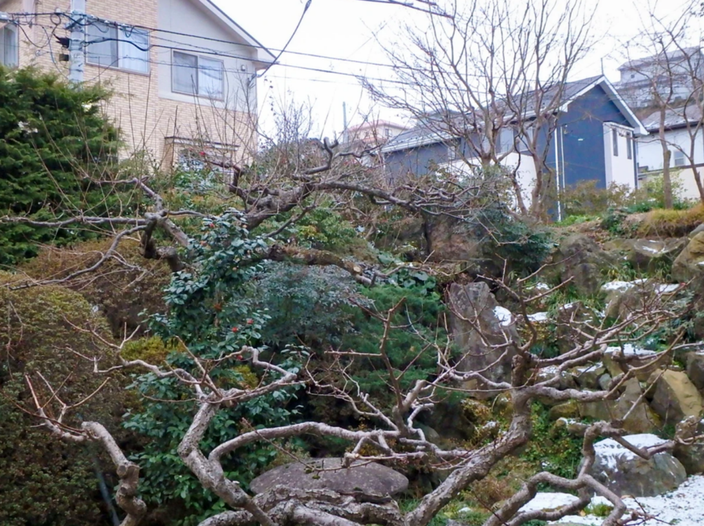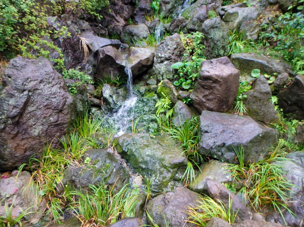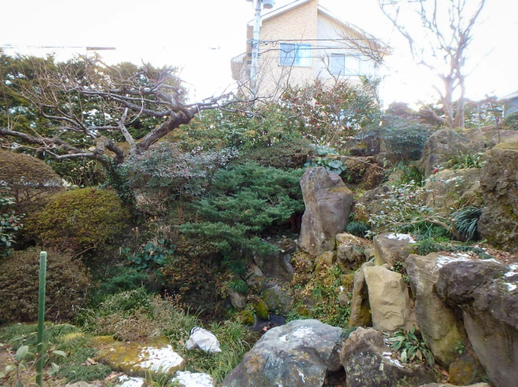 滝は2系統・5段落ちの滝に仕上げております。通常の滝は階段のように落ちるものがほとんどですが、代表の滝石積みでは迂回ルート・本線の二つで構成されています。石積みの天端の向こう側に川があり、川の流れの延長上で滝になった…そのようなイメージで石積みを施されたそうです。石積みばかりでも圧迫感が出てしまいますので…同時に植栽を施しながら全体のバランスを見て作業を進めて参ります。モミジ(ヤマモミジ・イロハモミジ・ノムラモミジ)の他、シラカシ・ロウバイ・クヌギ、以前から生えていたウメなどを植栽しました。