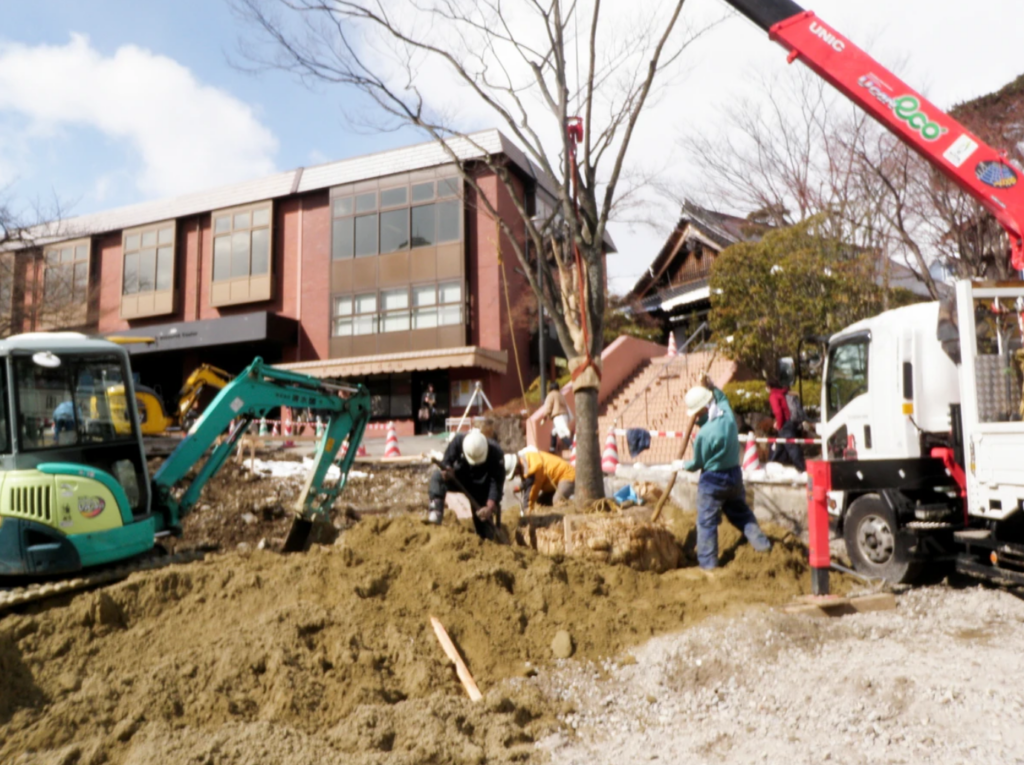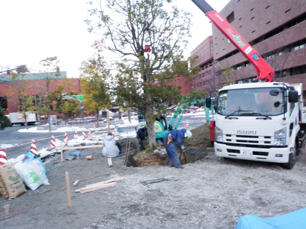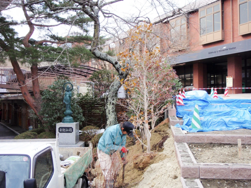 植栽場所が出来るまで仮植して待ちます。
