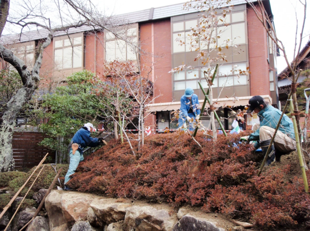 花壇に植えられていた低木を移植します。