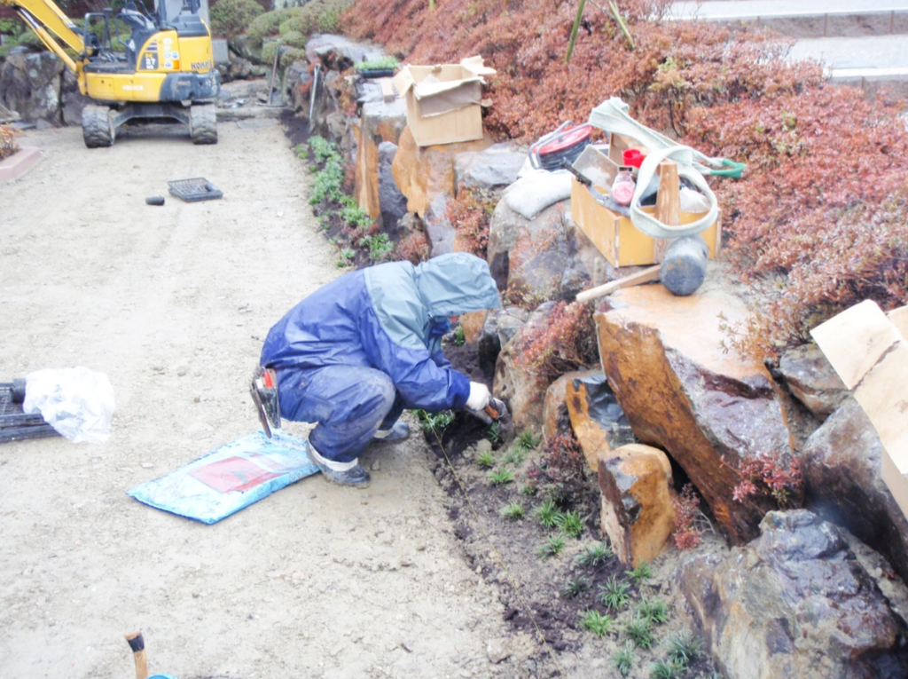 既存の石積みと違う石で石積みしましたが違和感無く仕上がりました。