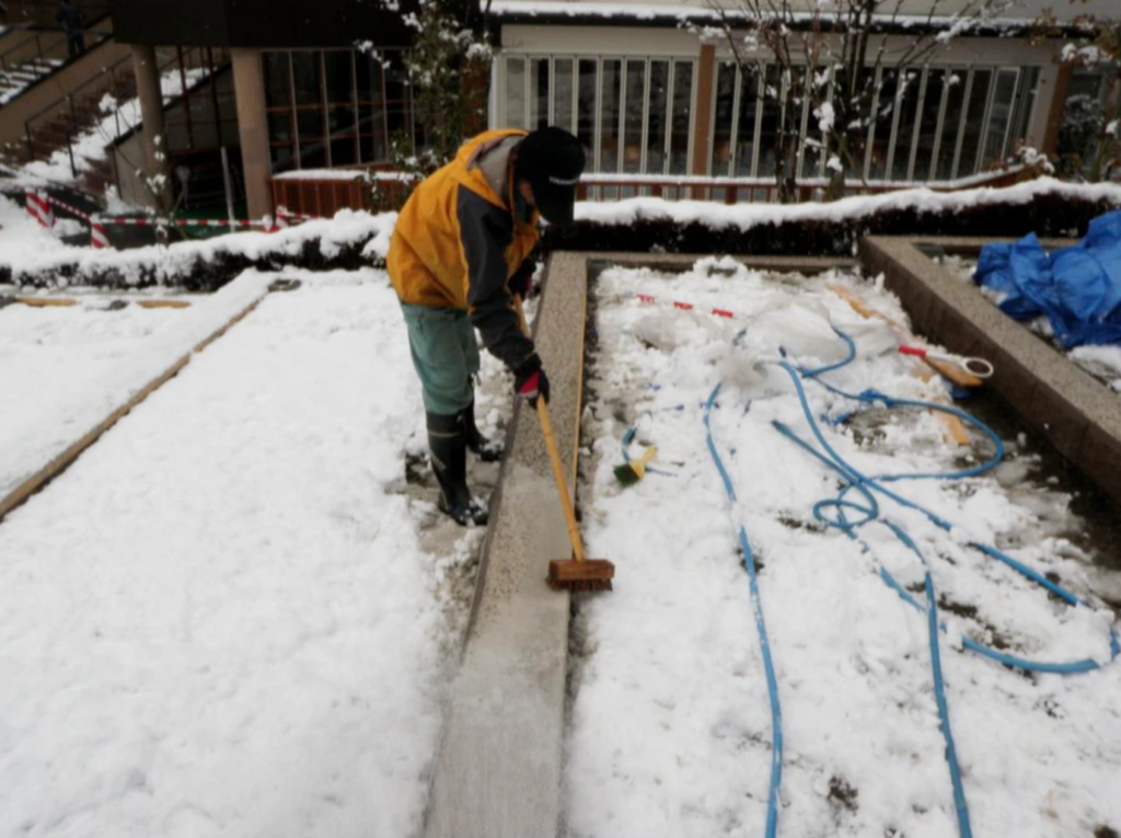 遅延剤を塗布し一晩養生をした後 洗い出しをしていきます。