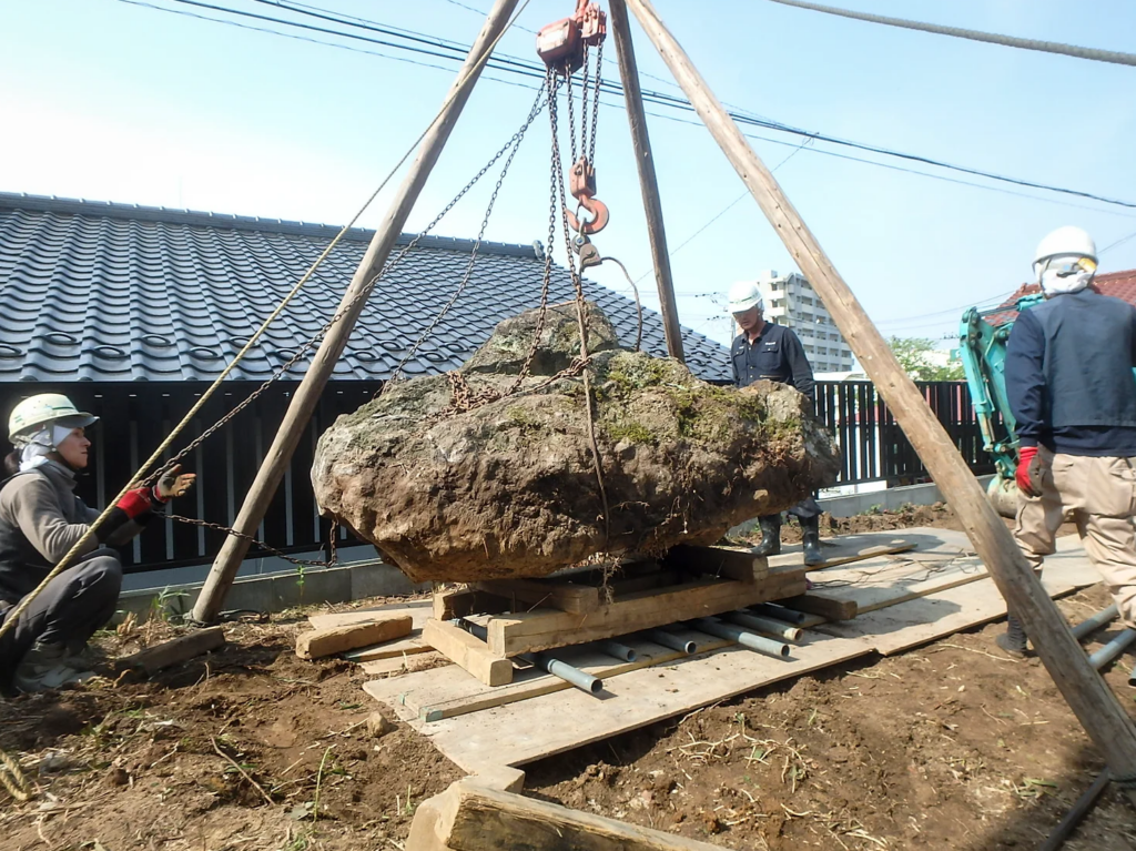 「いわゆる’庭石撤去’のご依頼でした。ご自宅の前を駐車場にされたく、現在ある庭石を退けたいと。ですがその庭石があまりにも大きく…何社からも断られ続けた中で、弊社へお問い合わせ頂いた次第です。いつもですと新規のお客様はお受けするのが難しいのですが…社員教育も兼ねてお受けすることにしました。」