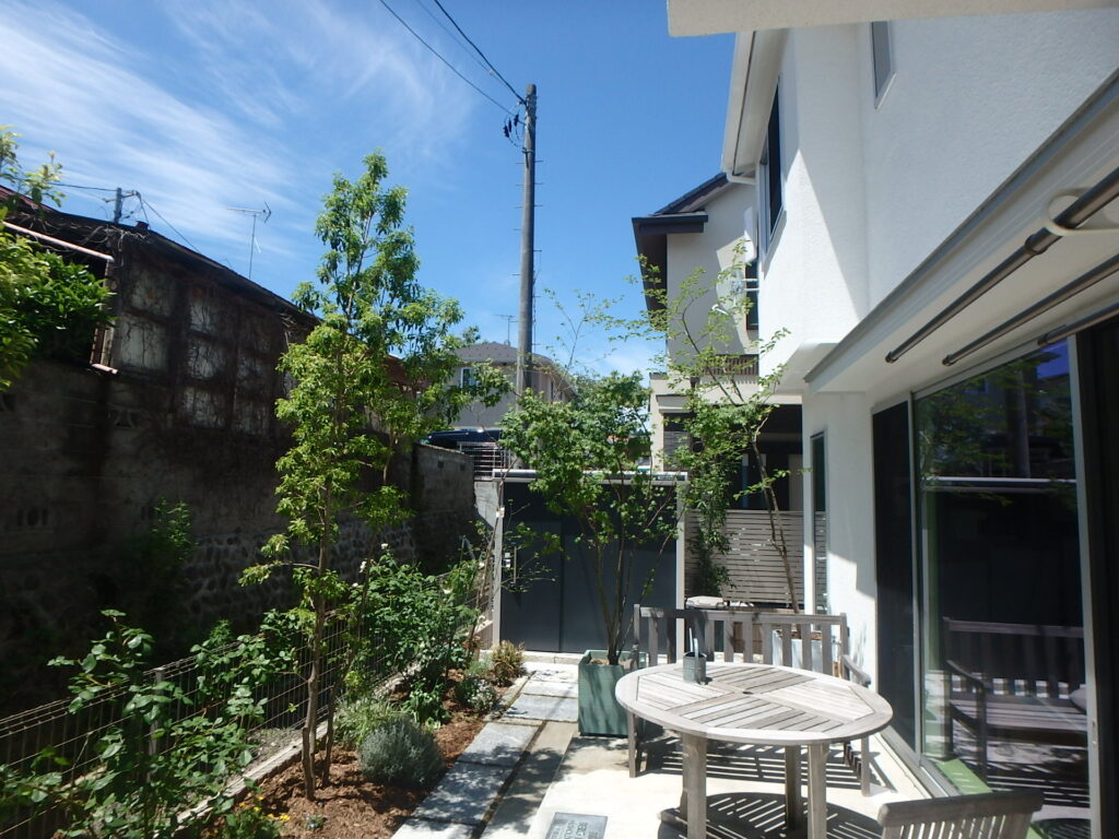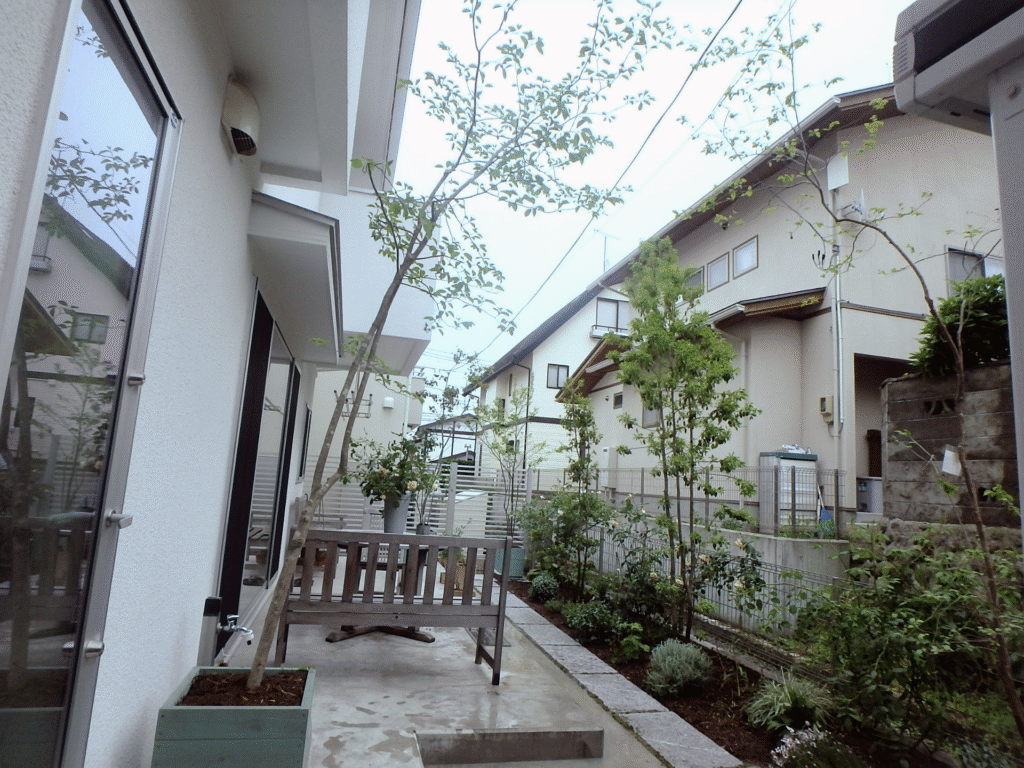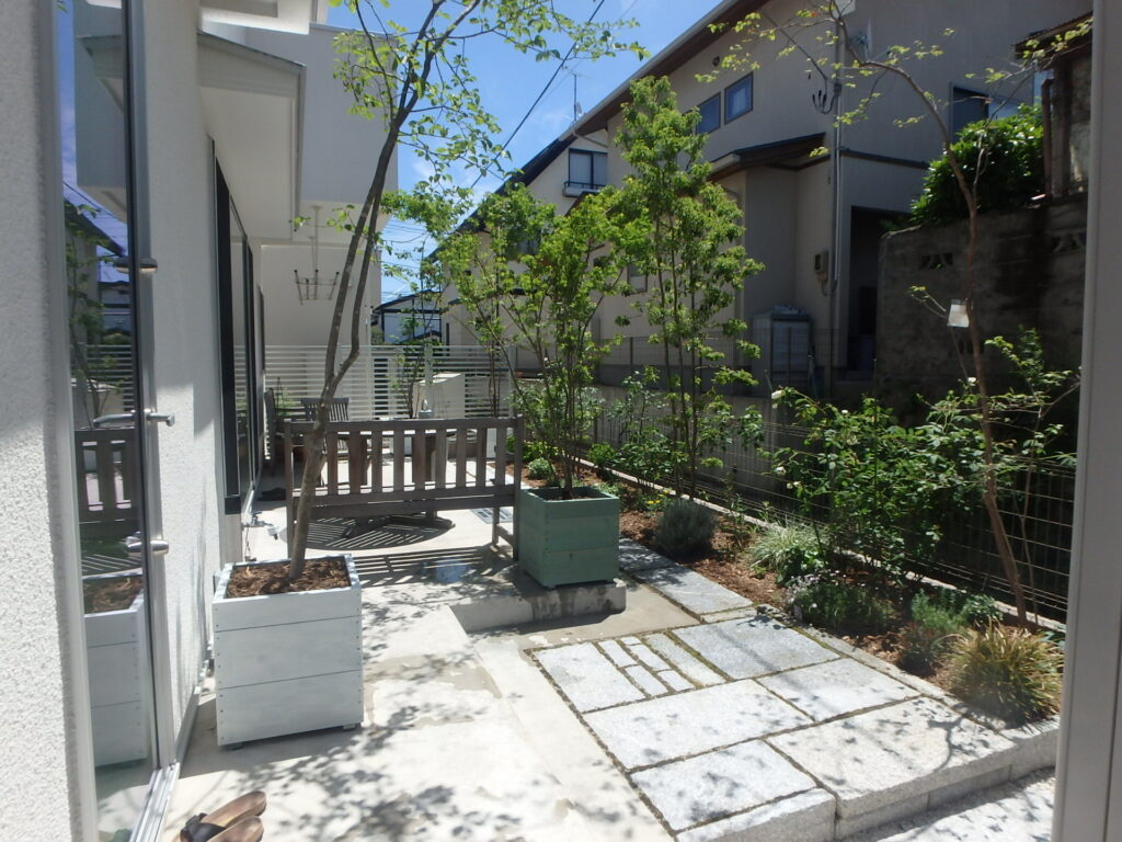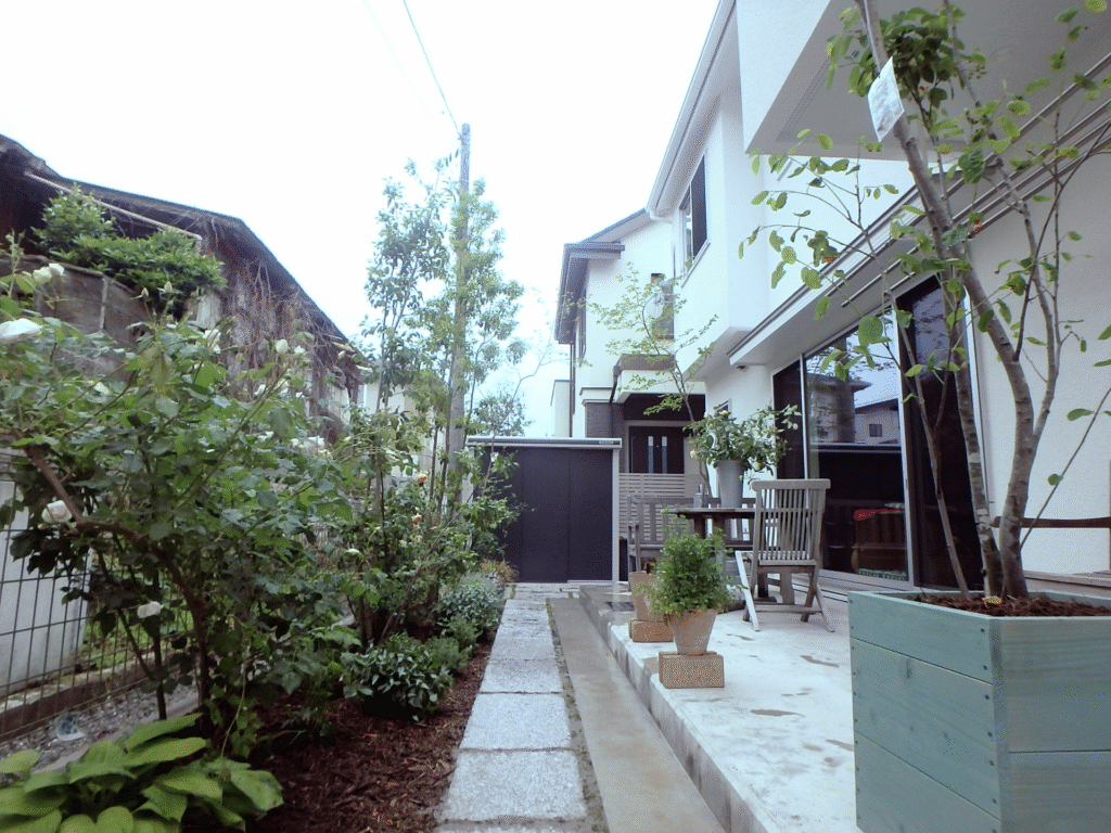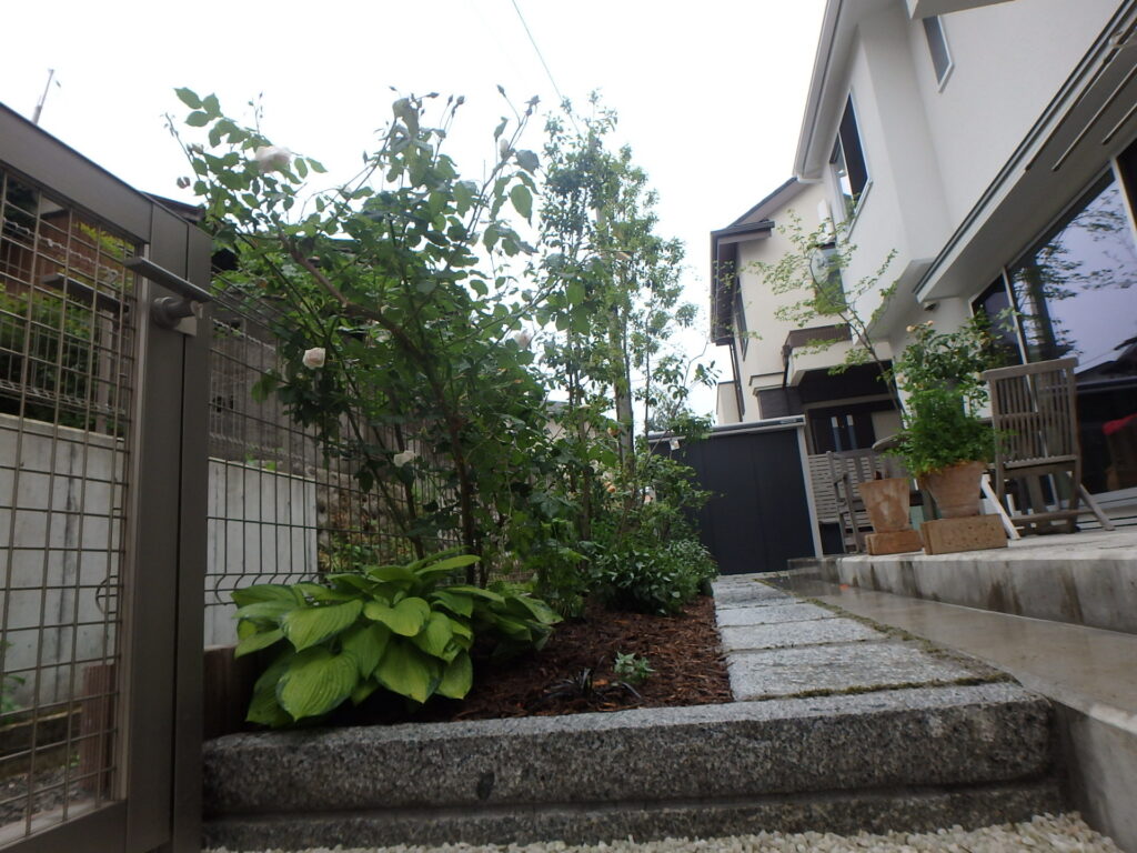 W邸のお庭は、元々はマンションに置いていた植木鉢の薔薇を持ってきて植えていたところ、何か雑然としていて殺風景な印象だったそうです。