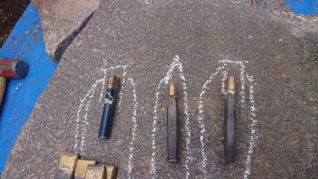 ⽯を割るたんきりという道具があるのですが、たん切りは売られているままの状態では使いづらいので、購⼊後はたん切りの先端をサンダーで削ってから使うようにとの教えを受けました。