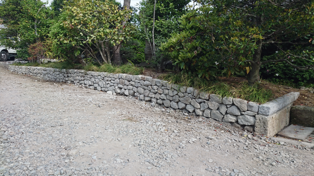 今回、実験的な意味合いも込めて、その辺で簡単に手に入る石での小さな石積みでしたが、思ったよりも使いづらかったというのが正直な感想です。ただ、現在ではクレーン等の重機を使って石積みを行える人が少なくなってきており、このタイプの石積みが主流になってきていることも残念なことです。若い庭師が石積みを行う機会が減っており、仕事として石積みをすることが難しくなってきているように感じます。どの分野についても同じことが言えると思いますが、素晴らしい技術や伝統を残しつつ、新しいものを取り入れ、より進化した状態で次世代へ継承していくことが今の私たちに課されている難題であると感じます。