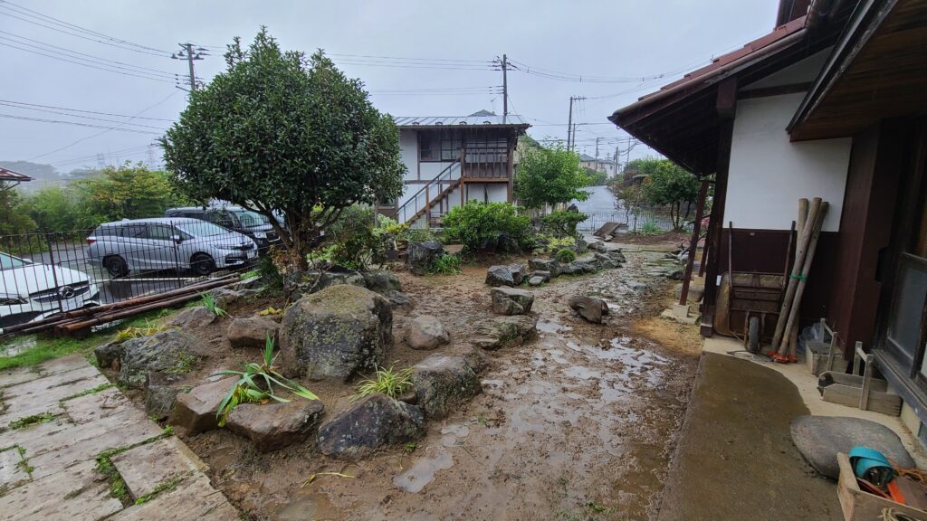 今回の施主様は、元々ご自分で石を並べられていたそうですが、それもとうとう限界がきてしまったということで石組工事の依頼を受けました。