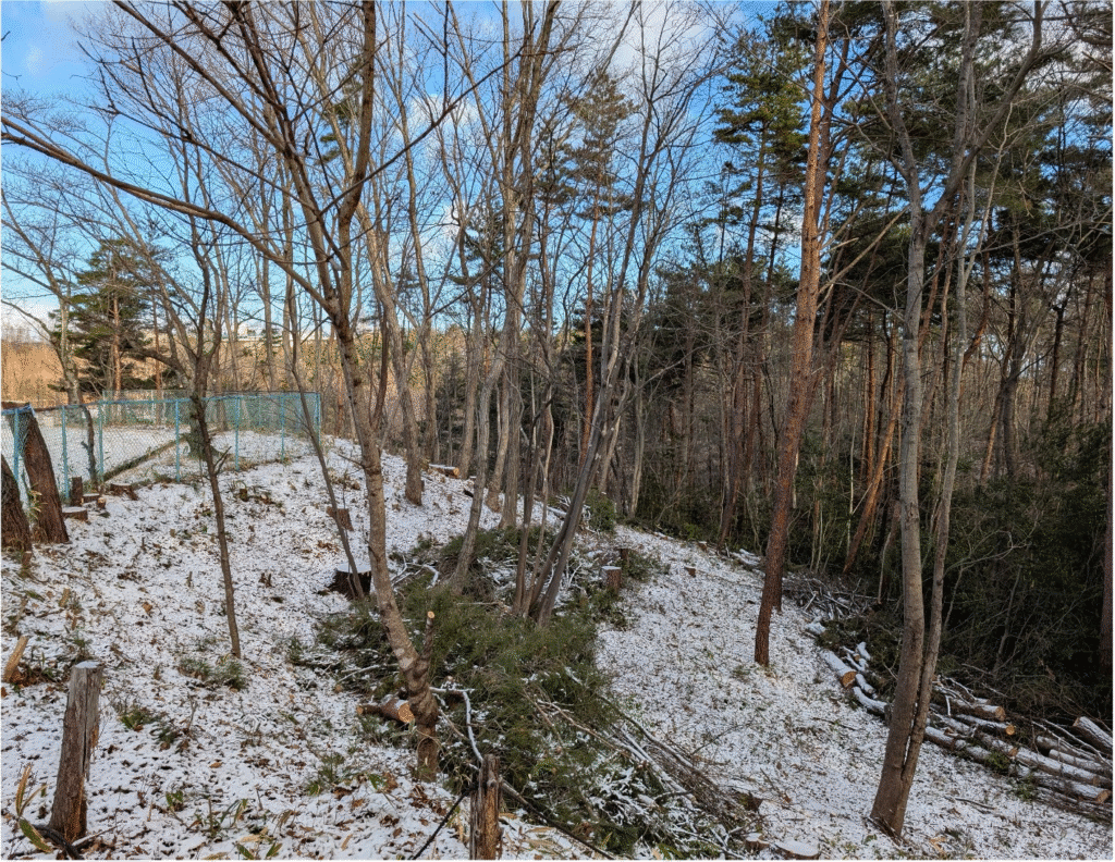 木を3分の1ほど間引き(不要な木を切ること)し、光と風が通りやすくなるようにしました。
