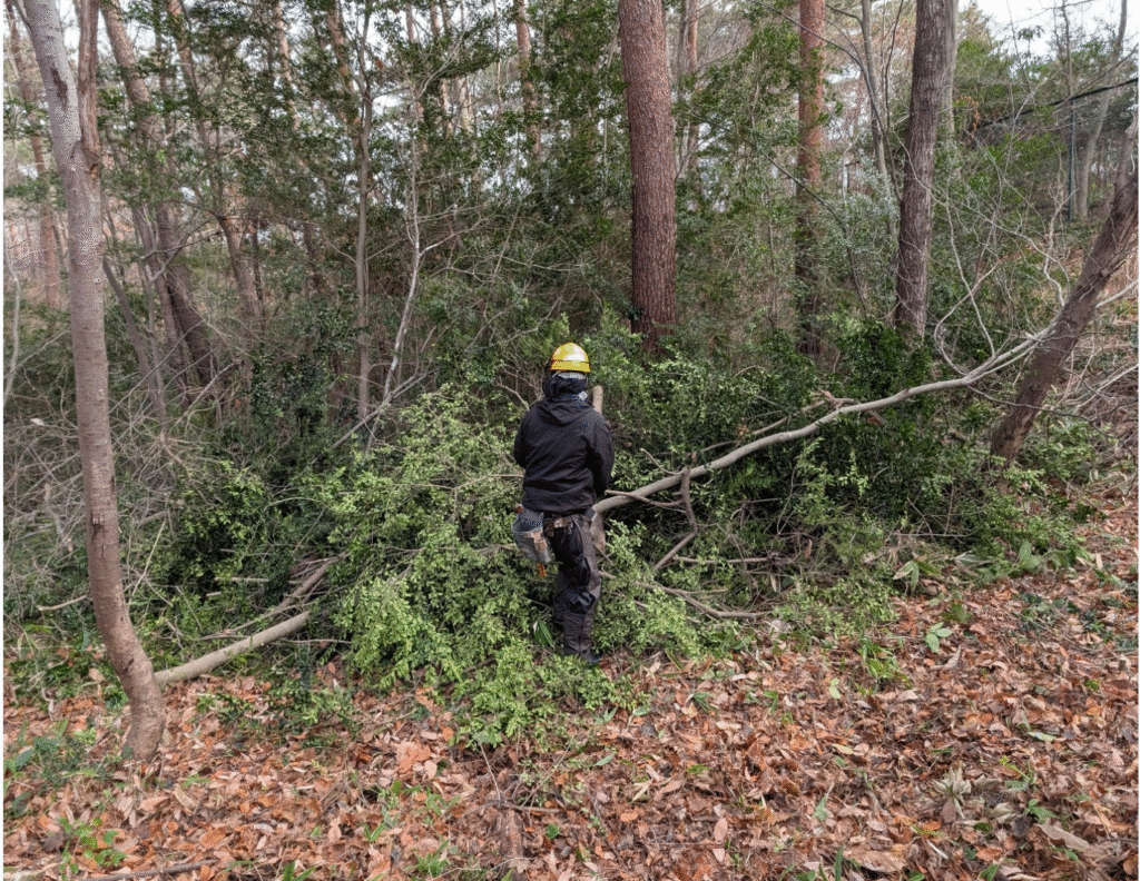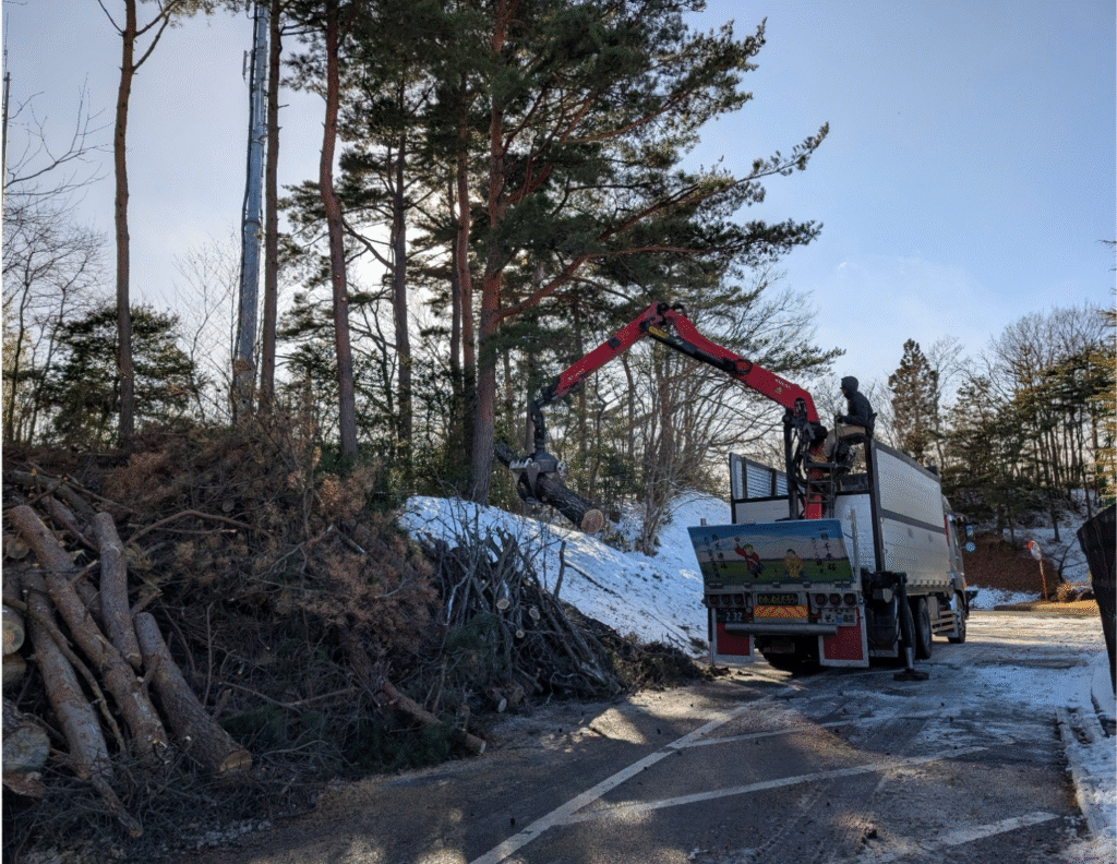 今回作業したのは、ゴルフ場の風通しを良くするための伐採でした。