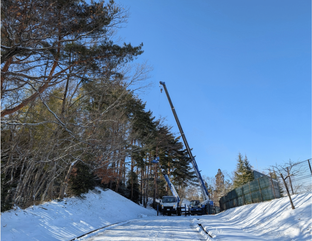 また、現場にウインチ付きの重機(小型のショベルカーのような機械)が入れる場合も、作業が楽になります。