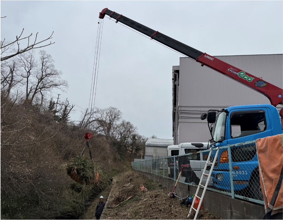 特にチェーンソーでの伐採は、たとえ大木ではないとしても、一歩間違えば大事故につながるため、スタッフ間で声を掛け合いながら、安全確認を徹底し、慎重に作業を進めていきました。