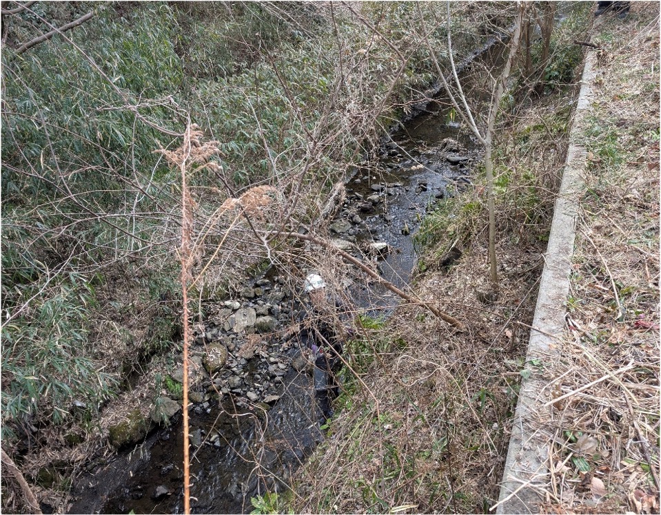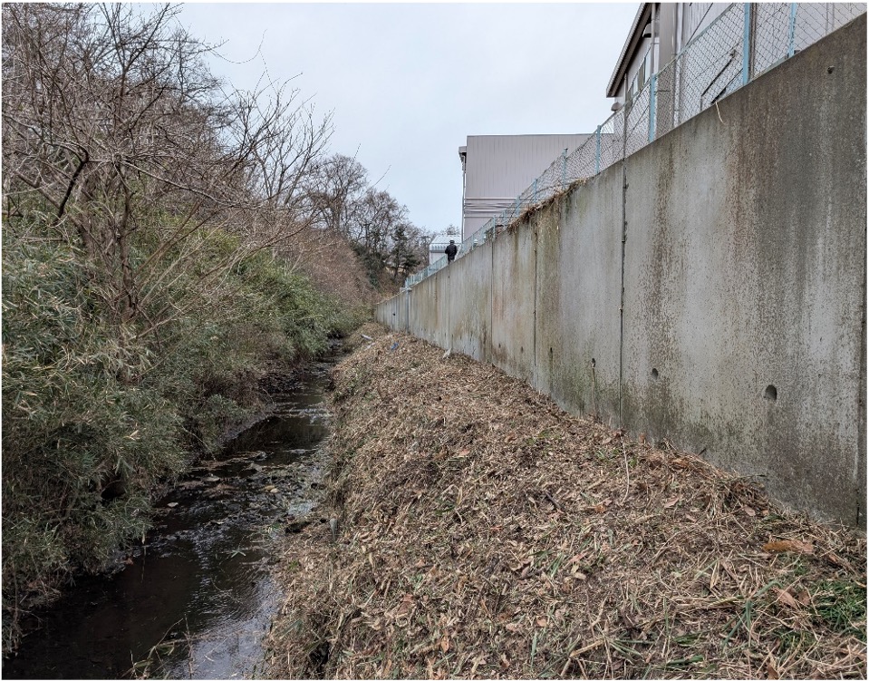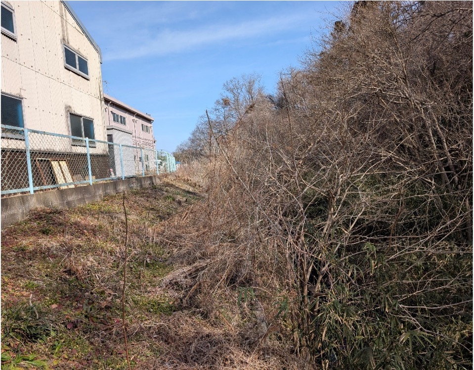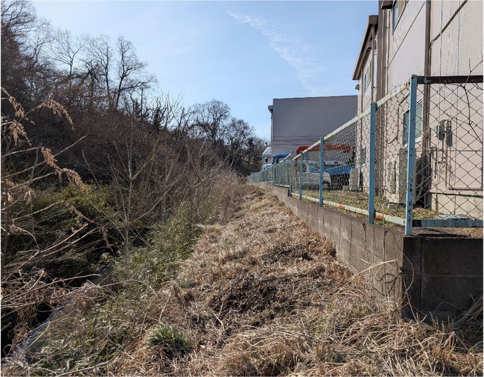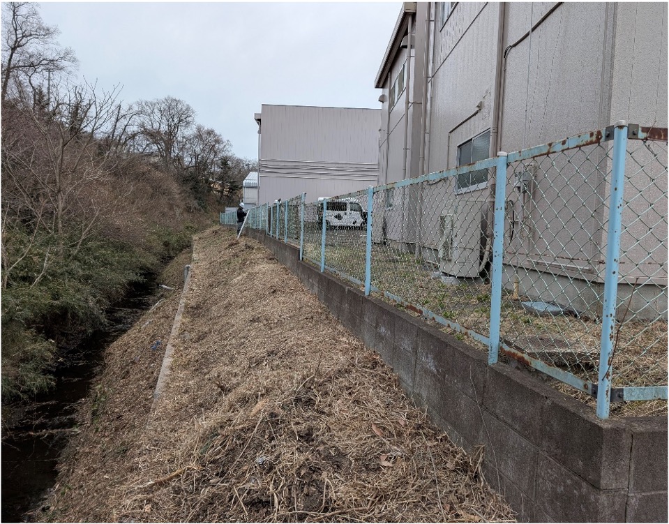 まず、今回ご依頼いただいたのは、川沿いに設置されたブロックとフェンス周辺の刈払・伐採作業です。