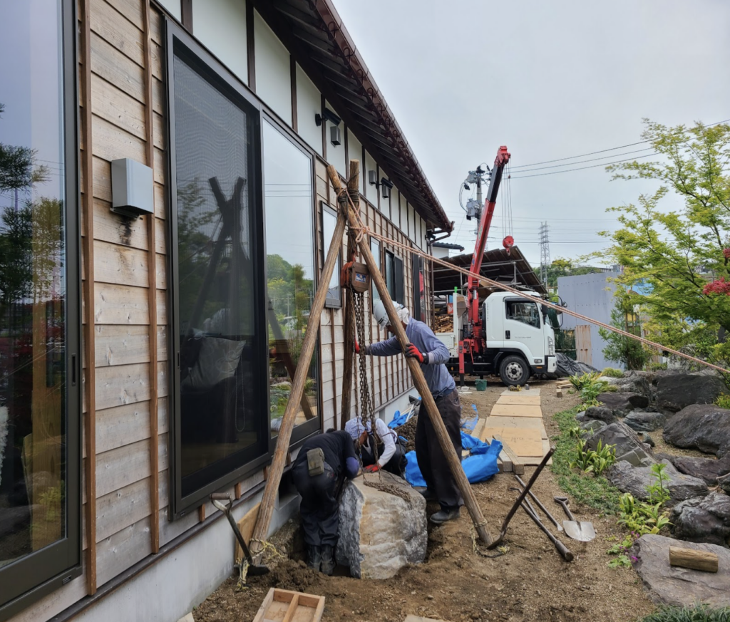 一般の方は、置かれている石だけをご覧になるかもしれませんが、その一つの石を据えるまでにはさまざまな物語があり、試行錯誤を重ねながら完成に至っているという裏側があります。沓脱石ひとつを設置するにも、石の選定から加工、運搬、設置まで多くの工程があり、そこには職人の技術と経験、そして細やかな判断が詰まっています。何気なく置かれている石の裏側には、見えない工夫と努力が存在します。こうした背景を知っていただくことで、庭づくりの奥深さや石材の魅力を、より感じていただければ幸いです。