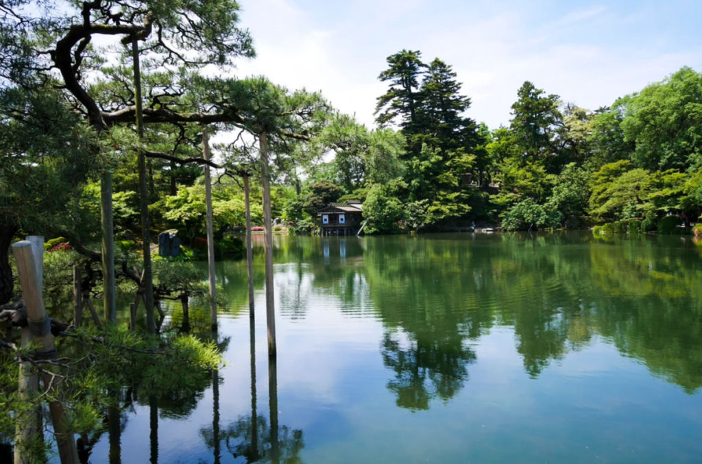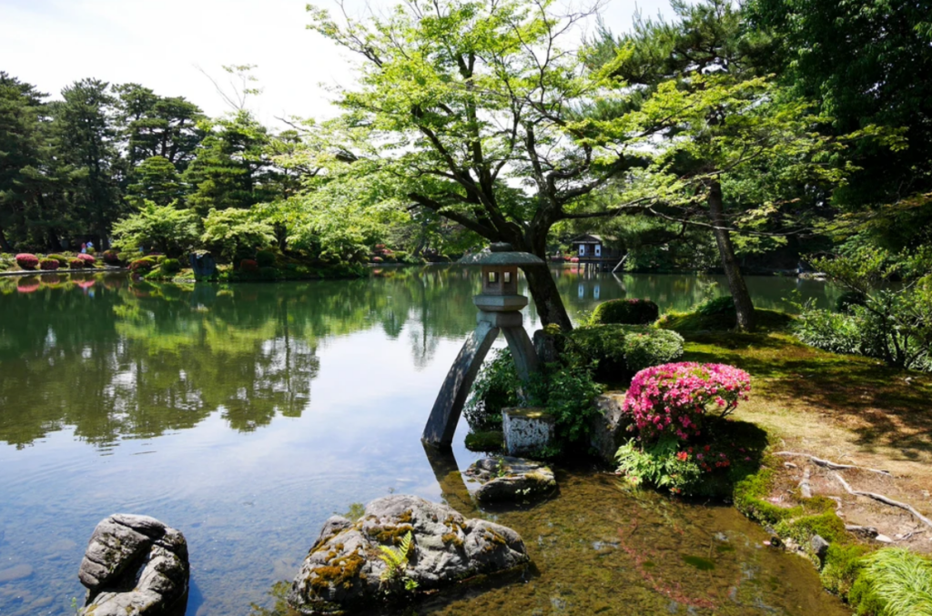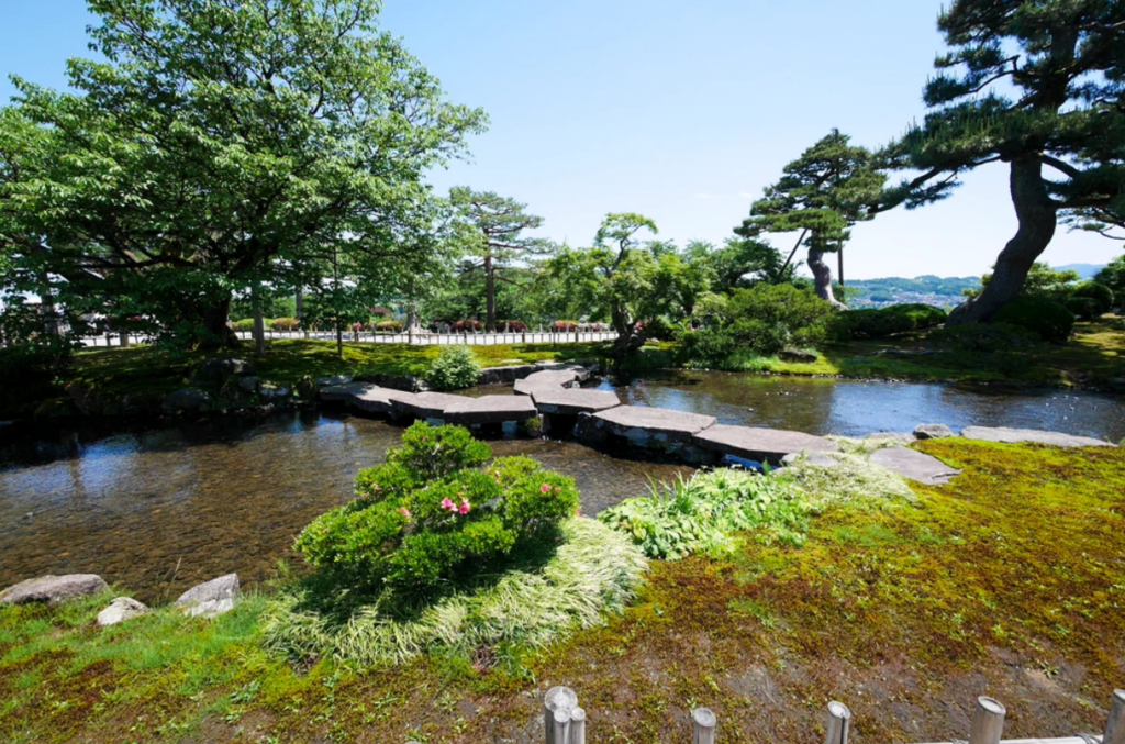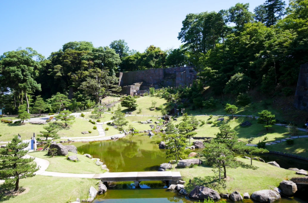 ですが、この積み方のために全て石をノミで叩いている事を考えると…今日まで崩れず残っているので相当手の込んだ石積みだともいえます。色味も様々混ぜていて目に楽しいですし、昔の方というのはなんとスケールの大きな遊びをするのか…と感心してしまいました。最後に、三代庭園の一つである兼六園も訪れました。切石一枚とっても相当大きく、華やかな印象のお庭です。