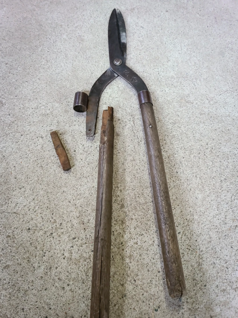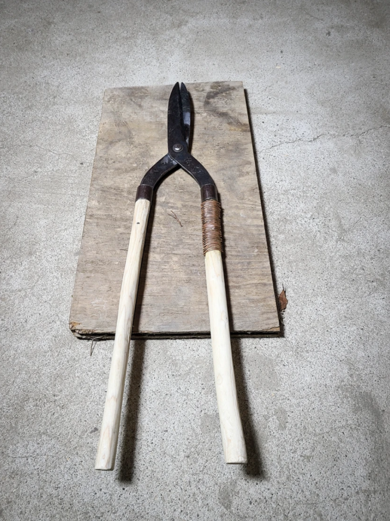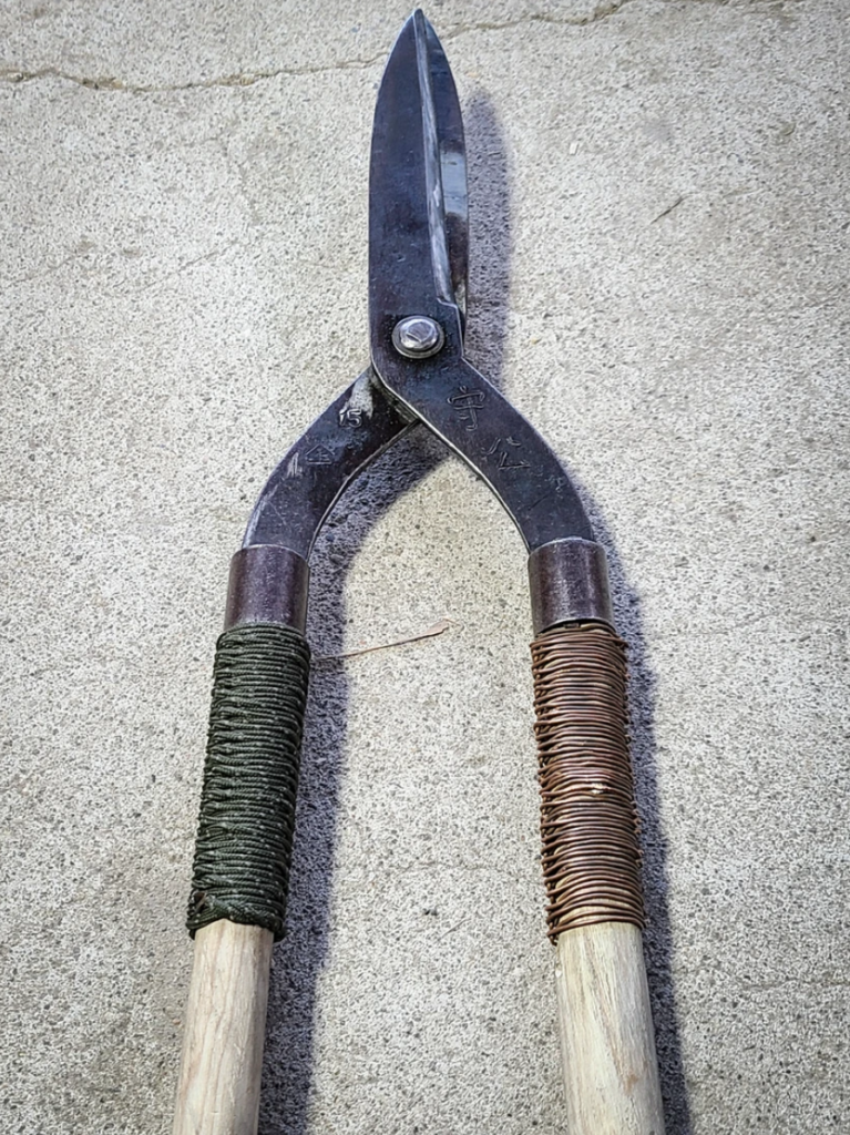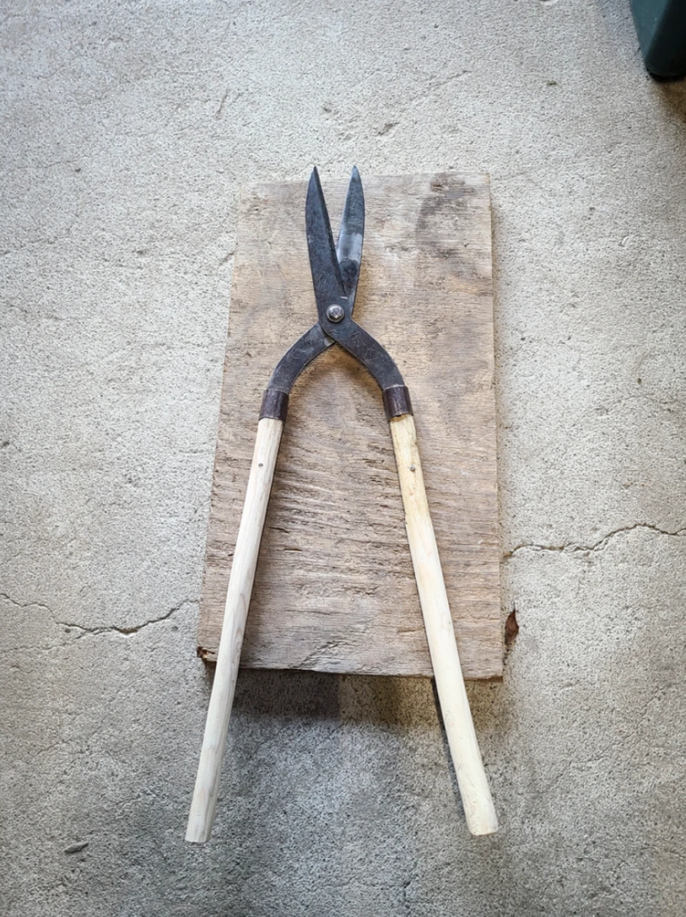 仕事を通して繰り返し身につく技術もあれば、日頃使用する道具の手入れもまた大切な作業の一つ。本日お伝えいたしますのは、道具の手入れ…「刈込ハサミ柄交換」についてでございます。