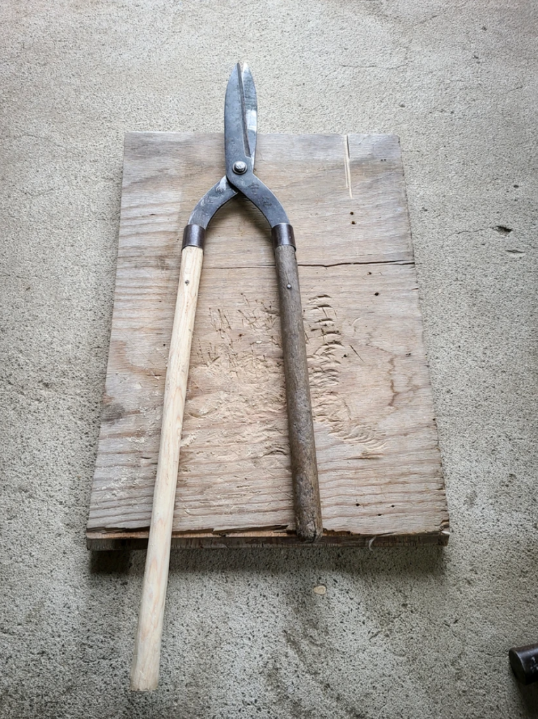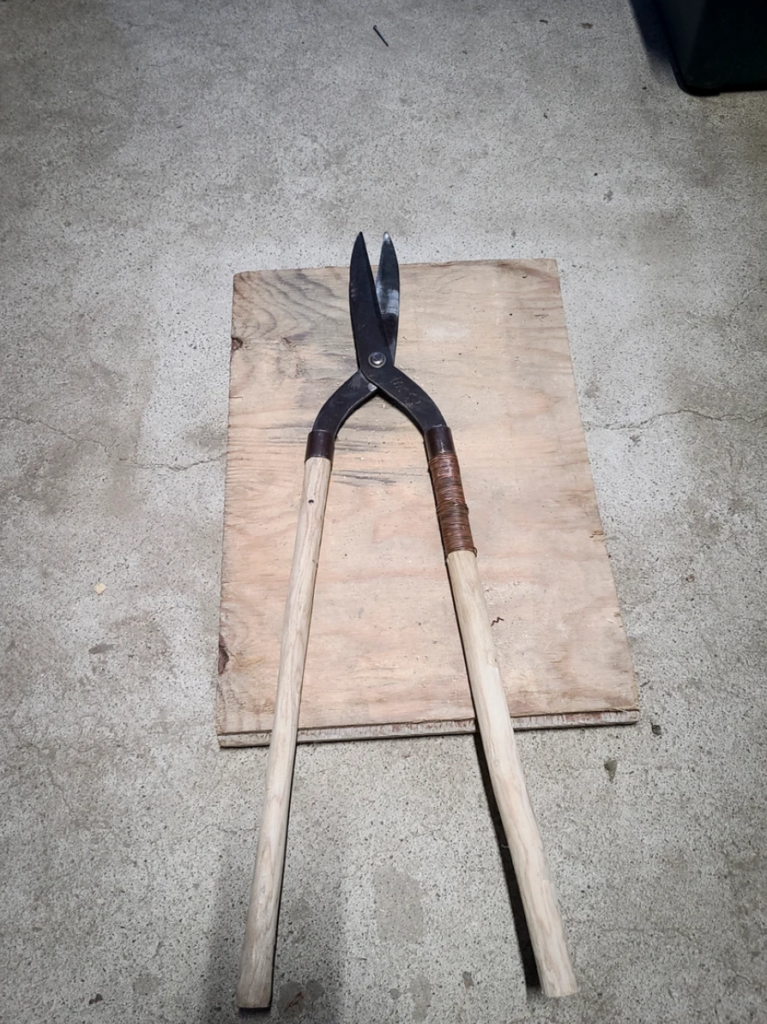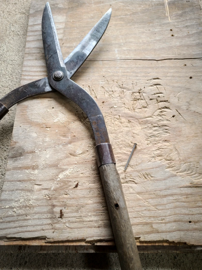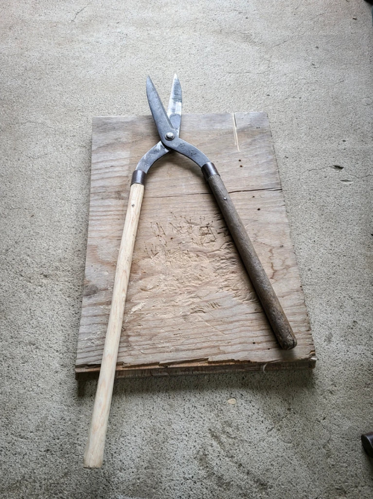仕事を通して繰り返し身につく技術もあれば、日頃使用する道具の手入れもまた大切な作業の一つ。本日お伝えいたしますのは、道具の手入れ…「刈込ハサミ柄交換」についてでございます。