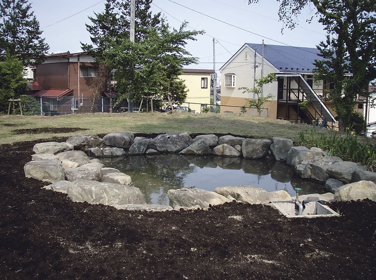 「施工時には、およそ10トンの水を近くの池から汲んで入れておりましたので…なかなか立派な池ですよね。