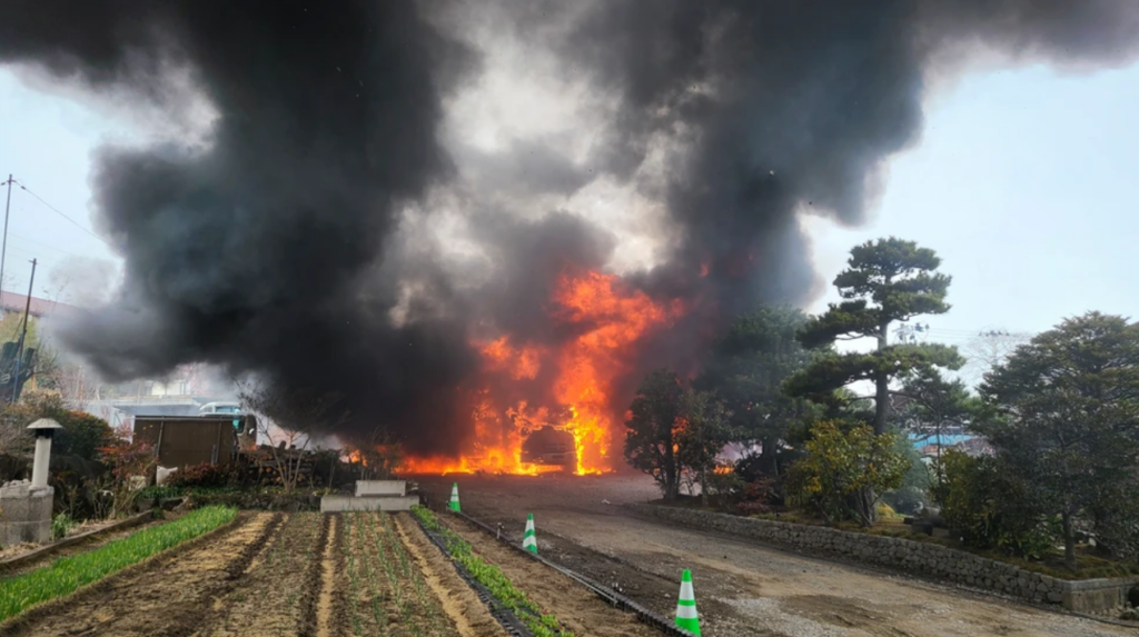 あまりに突然かつ衝撃的な内容に驚きを隠せないまま、インターネットで検索をかけるとすぐに、清水園の巨大な倉庫をすっぽりと覆ってしまう程の炎が轟々と立ち上る様子が映像で散見されました。