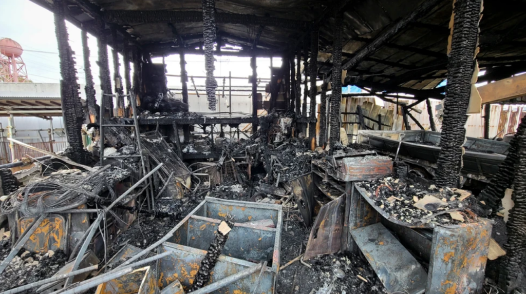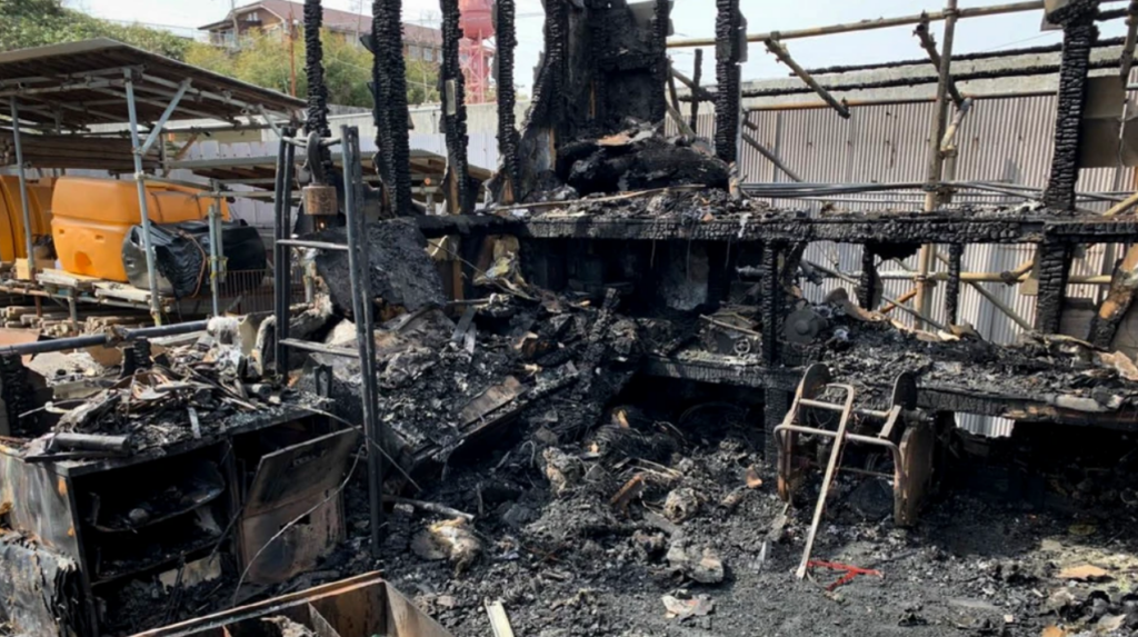 倉庫は一部鉄骨ではあったものの、基本的に木造での設計で燃えやすい建物だったとのこと。被害状況のお写真を見ても、その状況がいかに深刻なものであったかが見受けられます。