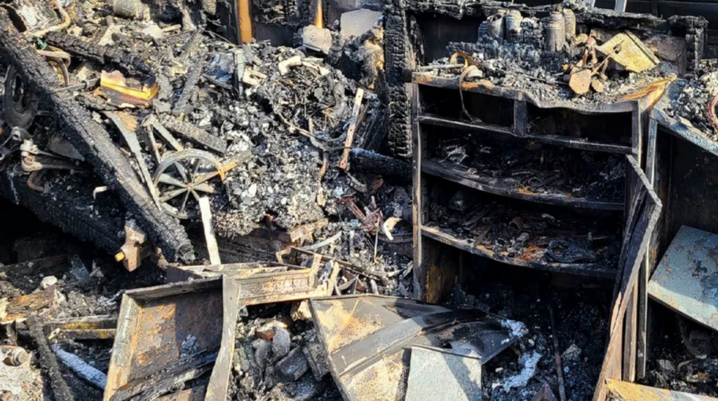「とはいえ、燃える時は突然燃えるのだな…と思った次第です。勝手口にある消火器2本と事務所の1本で消そうとしたのですが、無理でした。また事務所から車の鍵を持ち一台は車庫から移動させたものの、最終的には写真の通り…ほぼ全てのものが燃え尽きてしまいました。」