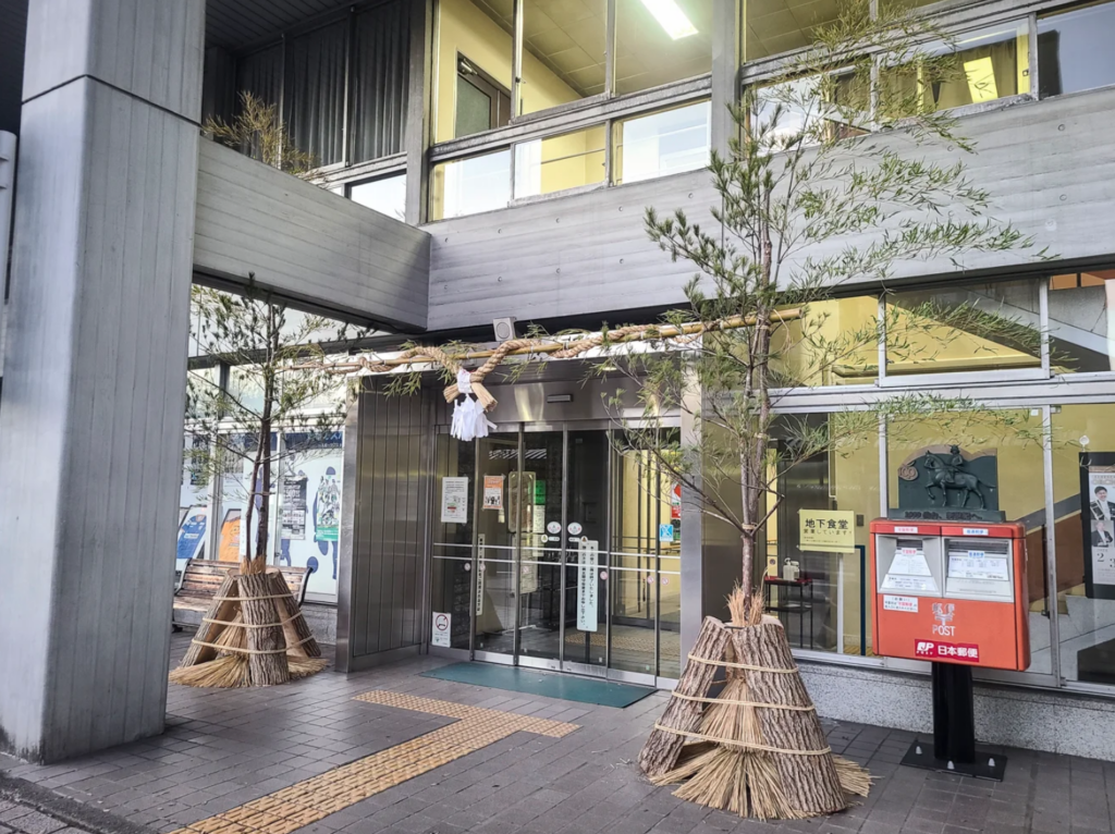 「翌日の朝には、うみの杜水族館。次いで高惣木工ビルへ向かいます。高惣木工ビルでは、看板が見えるように門松を設置しなければなりませんので、高くなりすぎず・低くなりすぎず…の塩梅を探りながら設置を進めて参ります。」