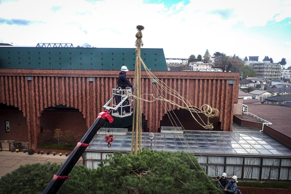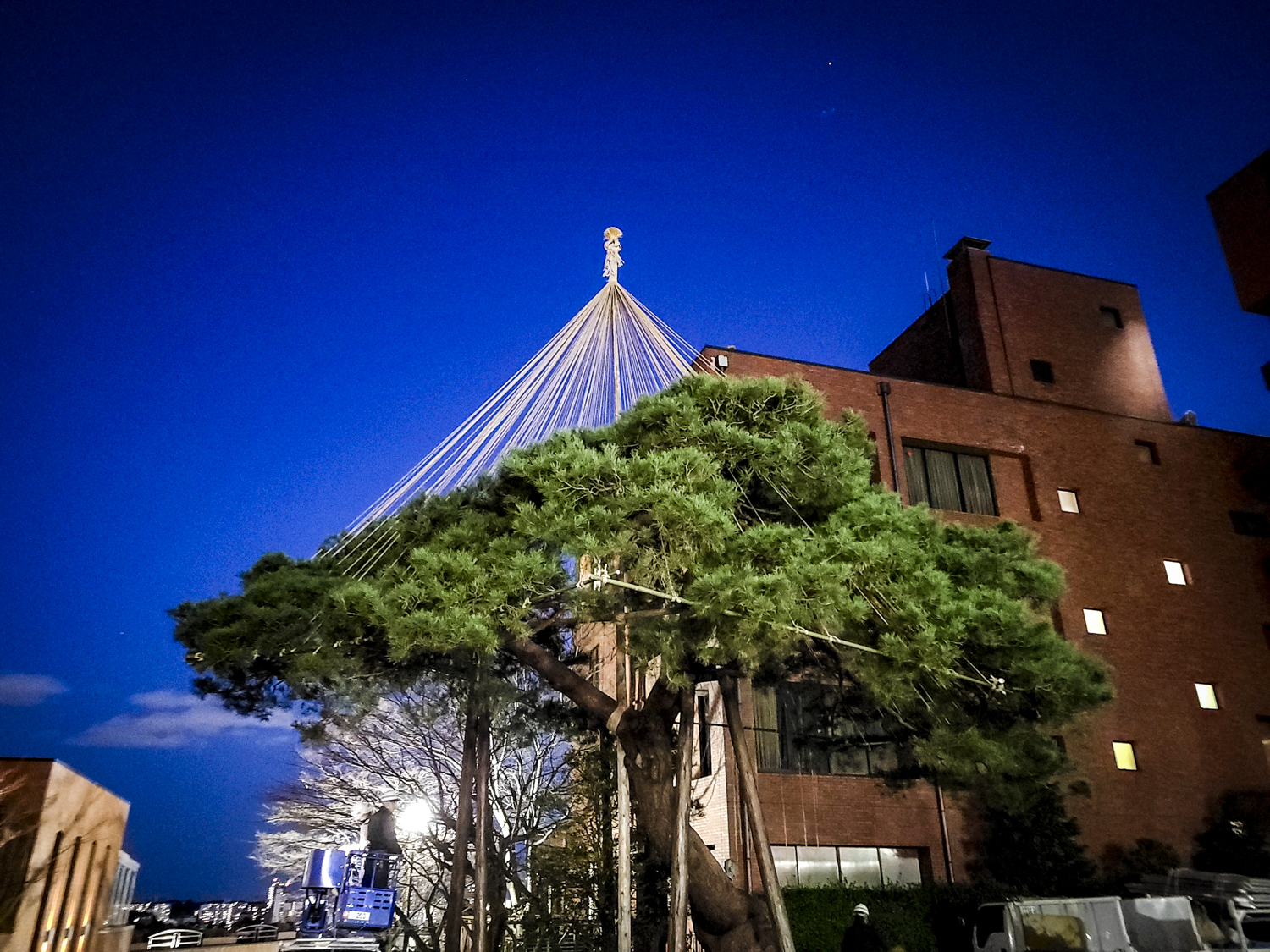 全長13mのボンデンに 124本の荒縄で雪吊をしています。