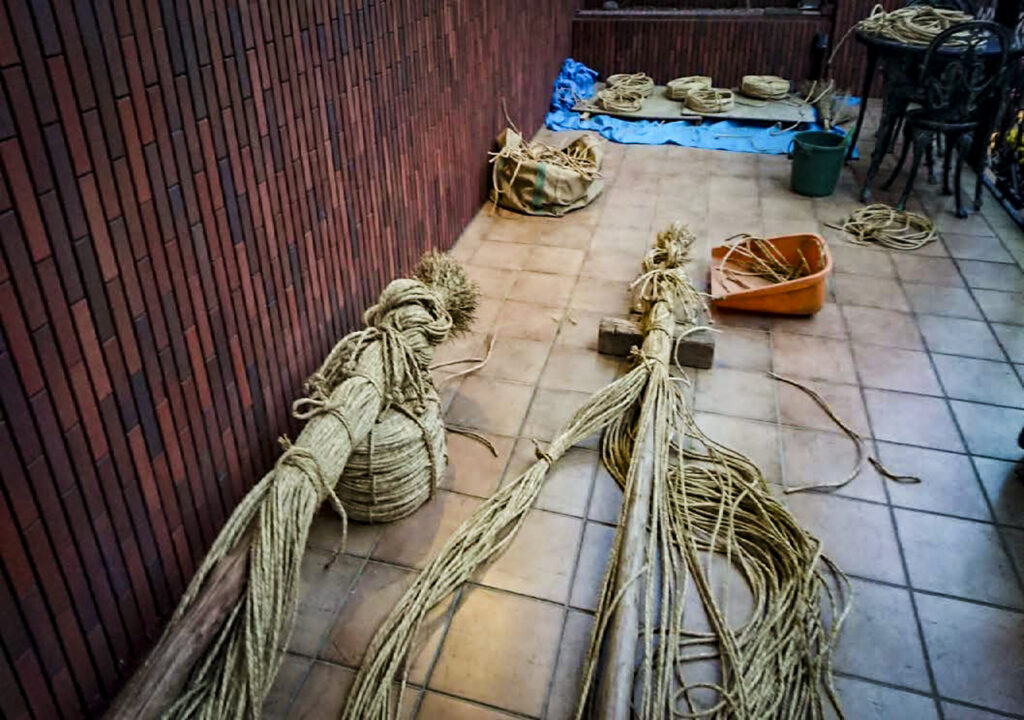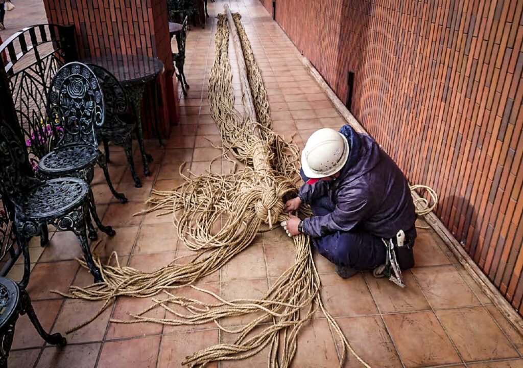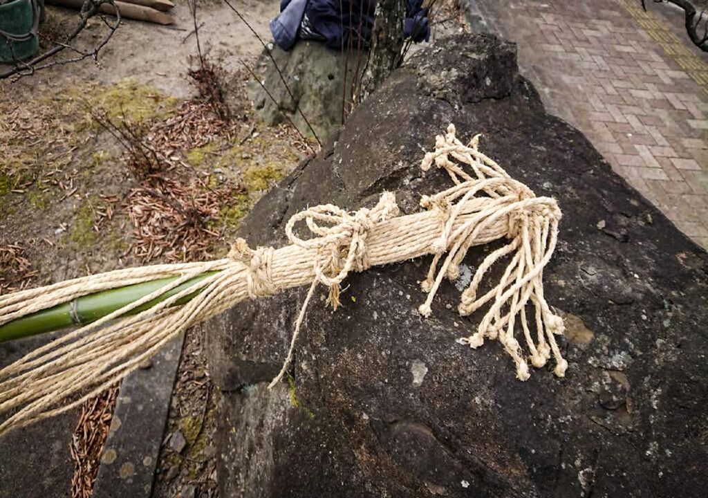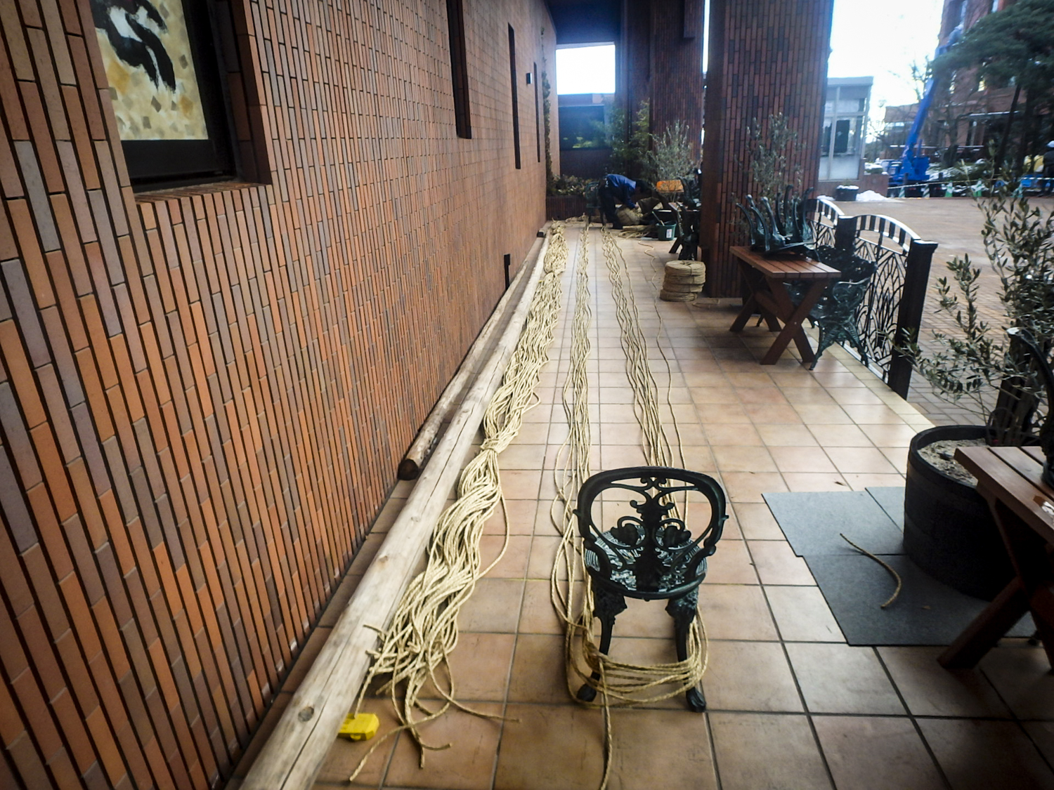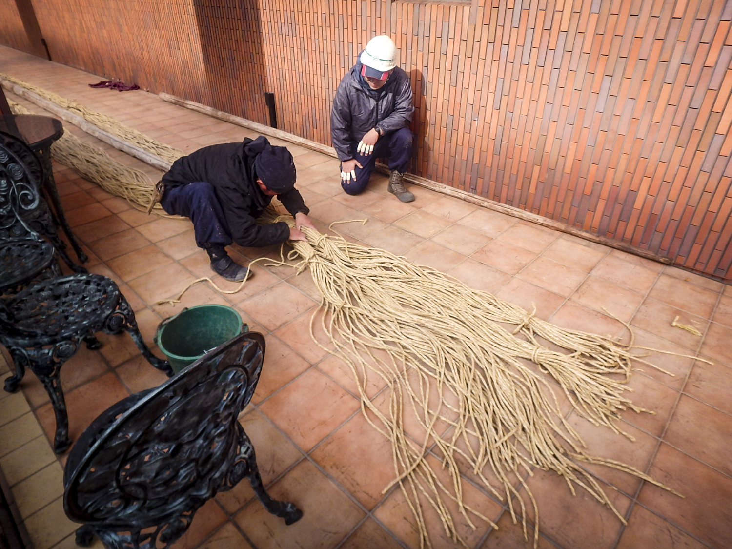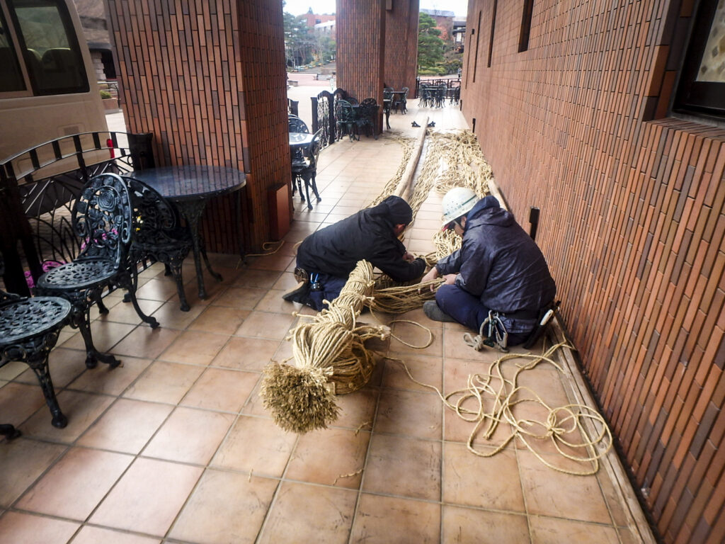 縄を受け取ったら、今度は結ぶ場所に配置していきます。