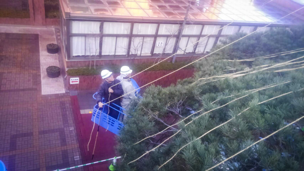 どれが良くどれが駄目という決まりはないものの、だからこそ個人における美意識が強く反映される’雪吊’や’冬囲い’。木々や現場に合わせ工夫を凝らすことで、冬景色が作られているのです。
