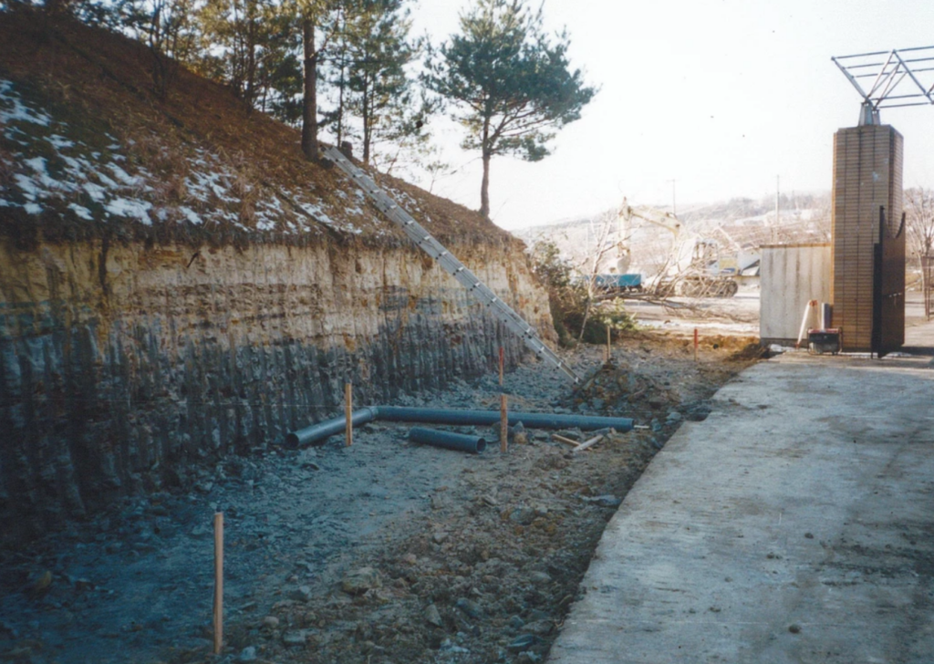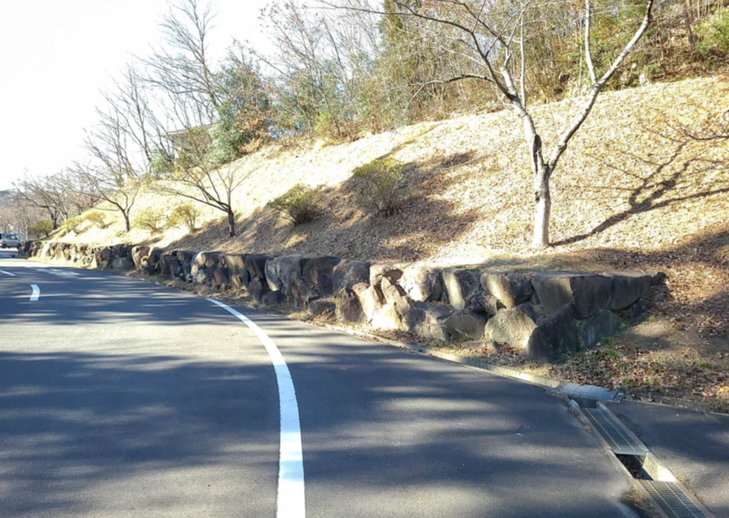 駐車場20台分の増設ですから…面積も相当なものでした。道路の長さで申し上げると、およそ40〜50m。外側内側と両面ございますので、延べ100m程度の石積みでしょうか。