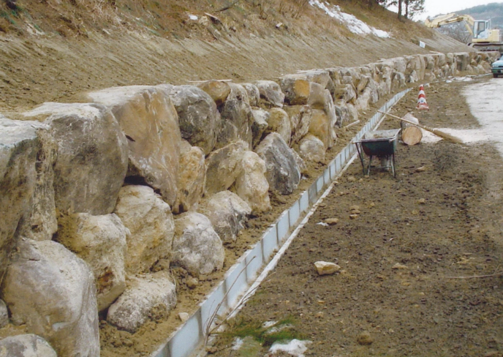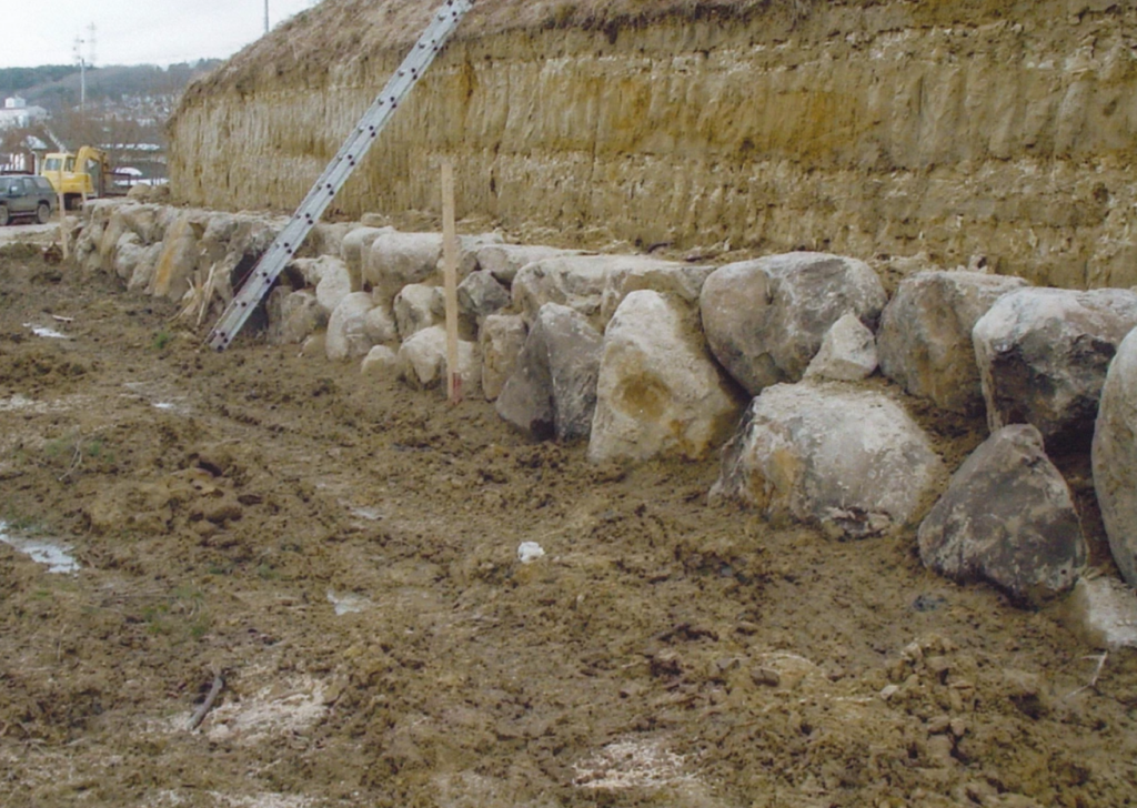 法面の丁張をし、 道路幅の丁張等をしてから 石積みをしていきます。
