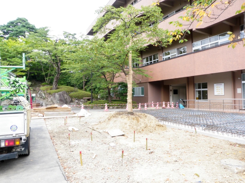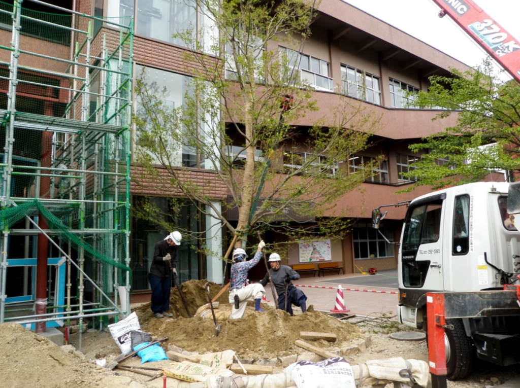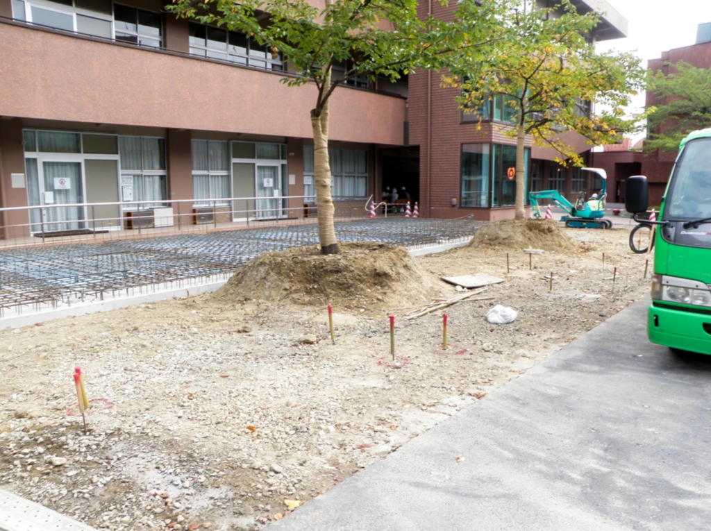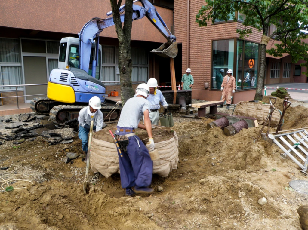 たとえ1cmでも10mでも移植する手間は一緒ですし樹木のストレスも相当なものです。今回は約8m程度前に移動しました。