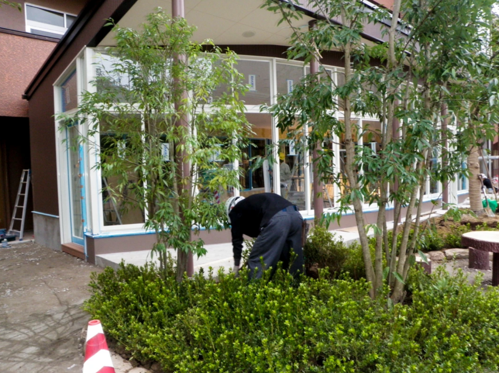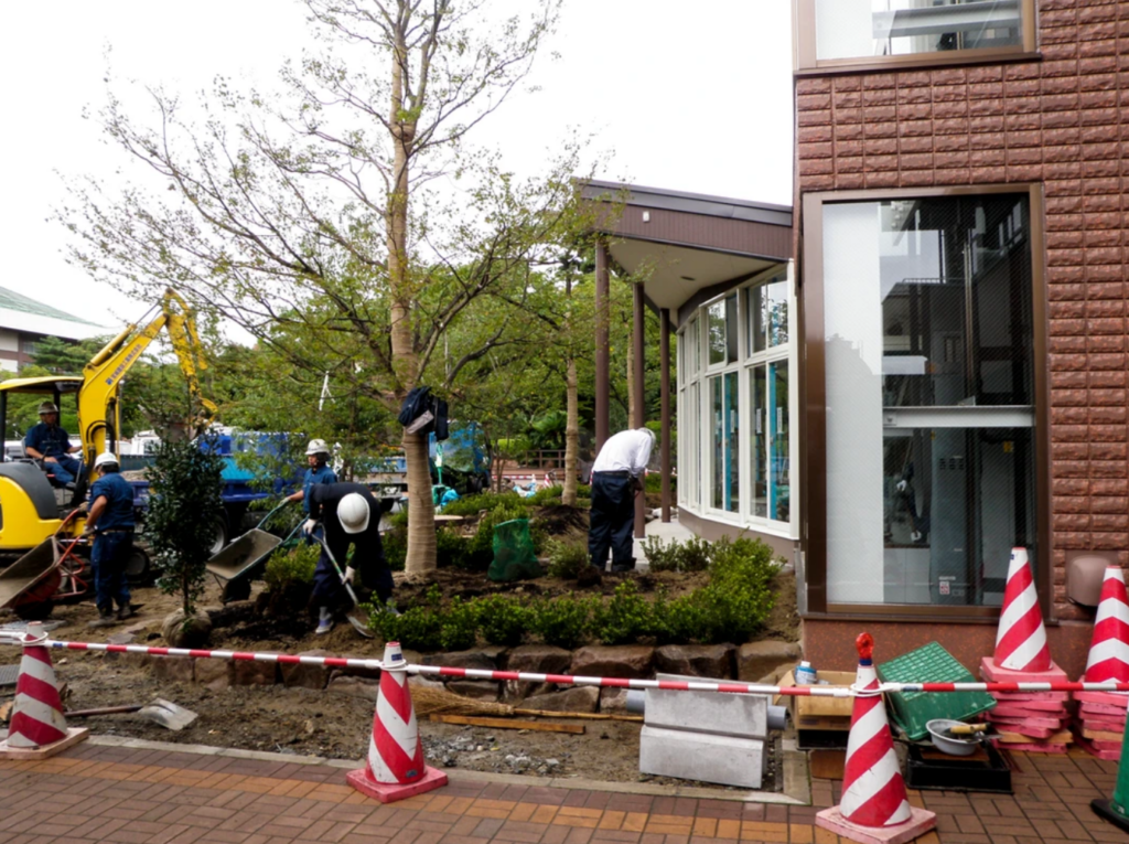 また、植栽はサクラをはじめイロハモミジやサツキなど馴染み深い植物を厳選しています。10年後それら植物が育ったときのことを想像しながら、全体的に統一感があり、森の豊かさを感じるような植栽を心がけました。