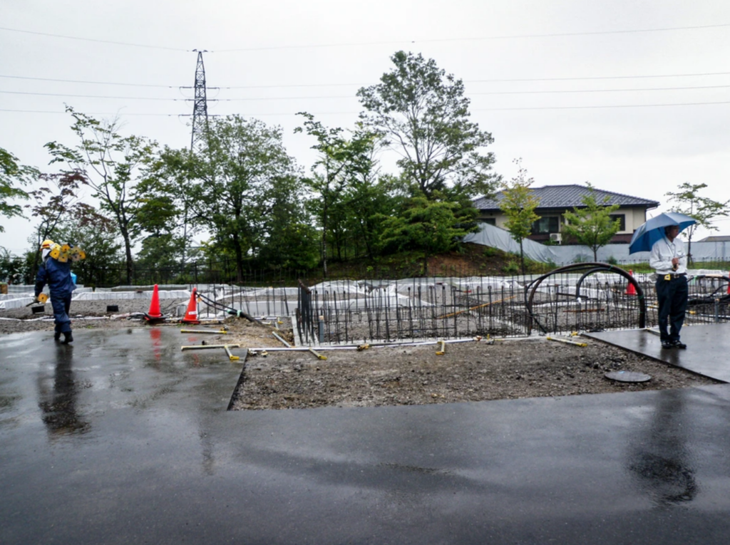 設置場所に慎重に高さや角度など確認しながら、いろんな角度より眺めて決定していきます。建物がないのですが、また動かすとなると大ごとになるので、 想像力が大事です。