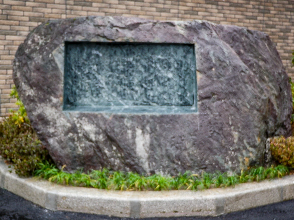新しい建物の玄関前に設置された後植栽し後は看板屋さんがプレートを取り付け終了です。